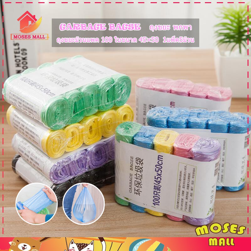 ถุงขยะ พกพา 100 ใบขนาด ถุงขยะม้วนแพค 45×50 1แพ็ค5ม้วน เนื้อเหนียว ไม่สกปรก ถุงขยะอเนกประสงค์ ถุงขยะแบบม้วน