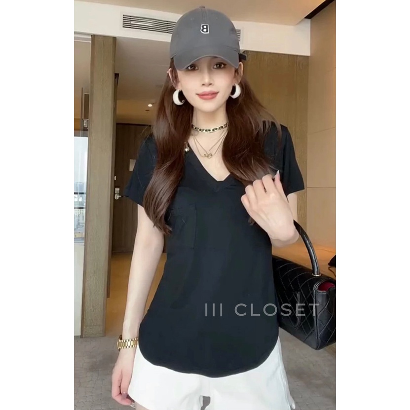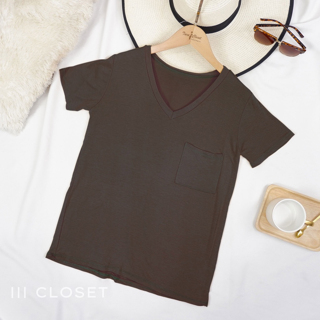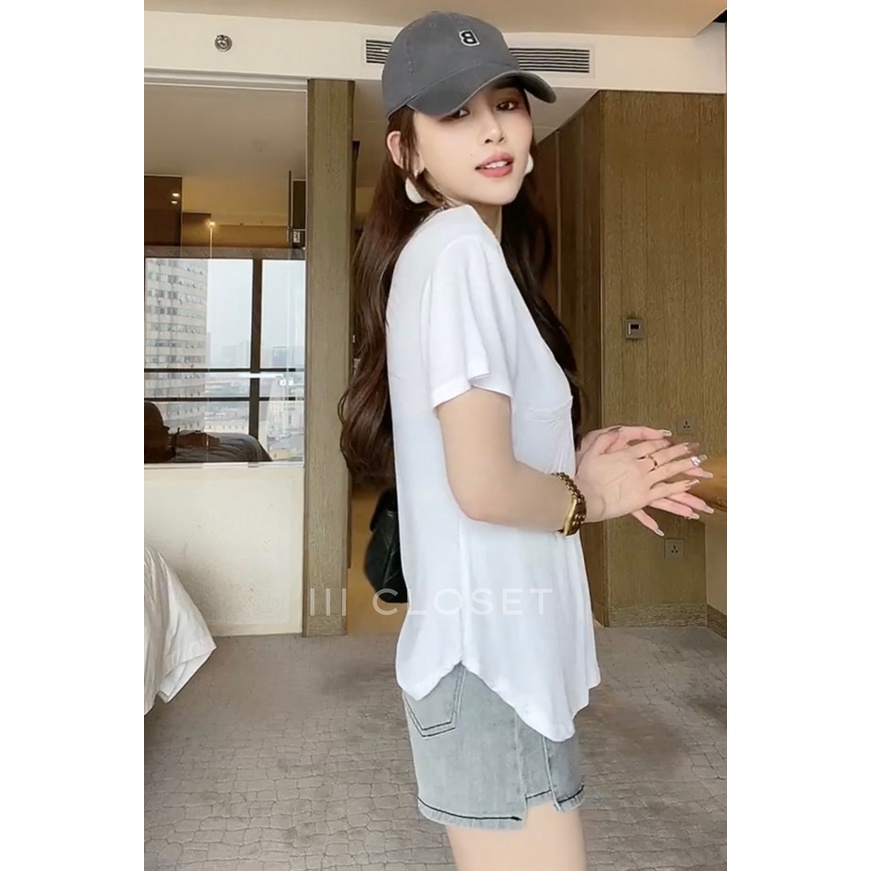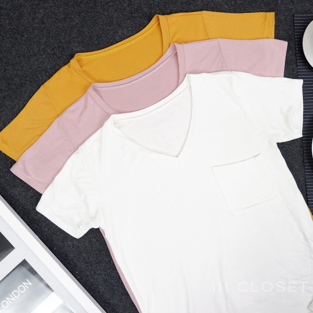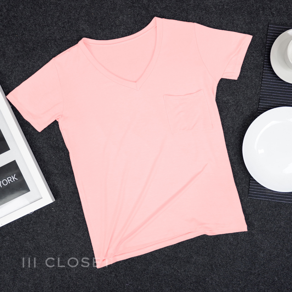 เสื้อยืด lll Freesize lll BA024 คอวี กระเป๋าหน้า เนื้อผ้าเรย่อน ผ้าดี หนา เด้ง ใส่สบาย ไม่ร้อน