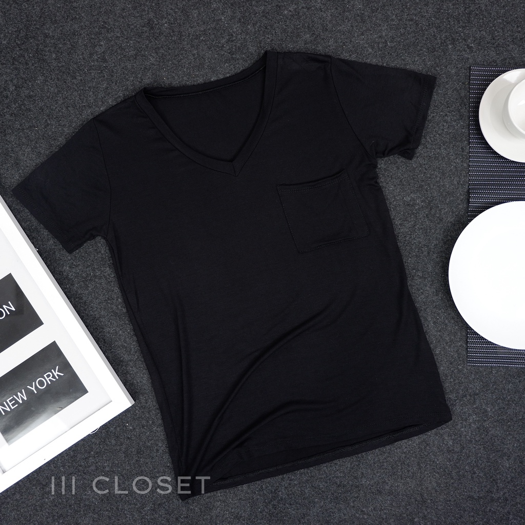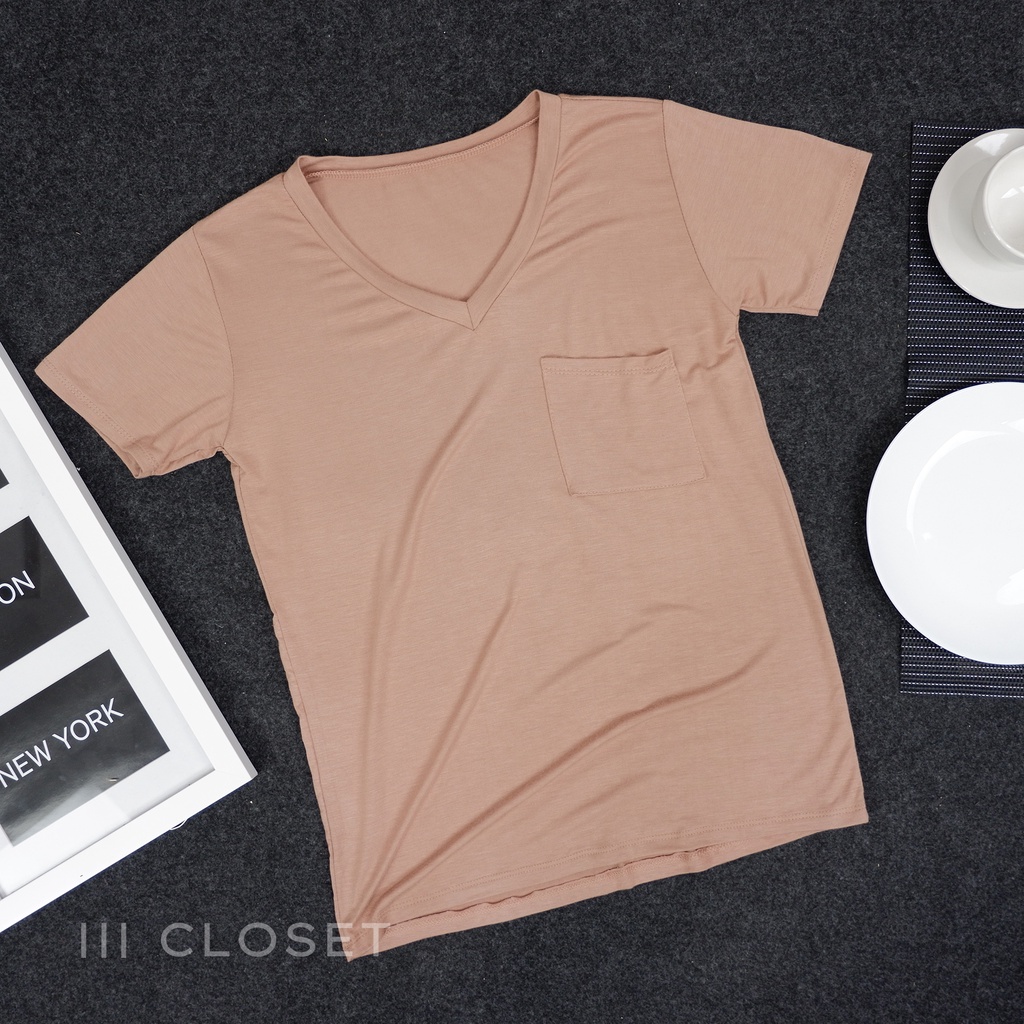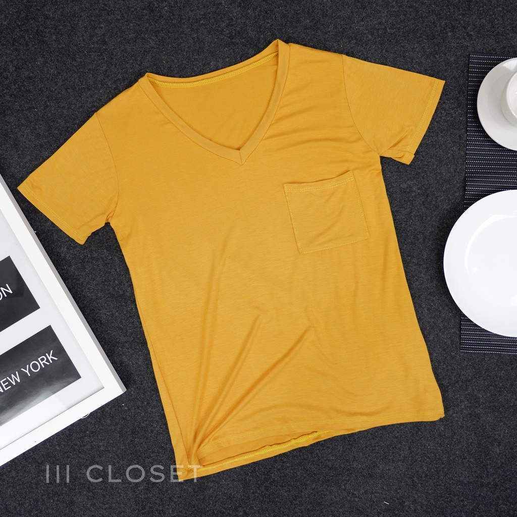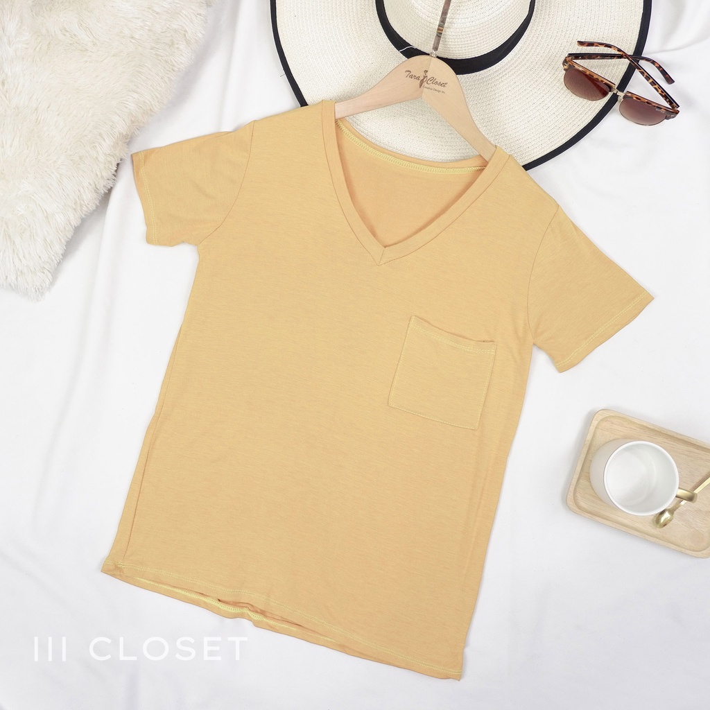 เสื้อยืด lll Freesize lll BA024 คอวี กระเป๋าหน้า เนื้อผ้าเรย่อน ผ้าดี หนา เด้ง ใส่สบาย ไม่ร้อน