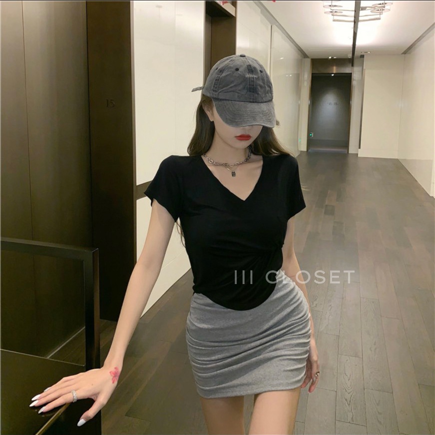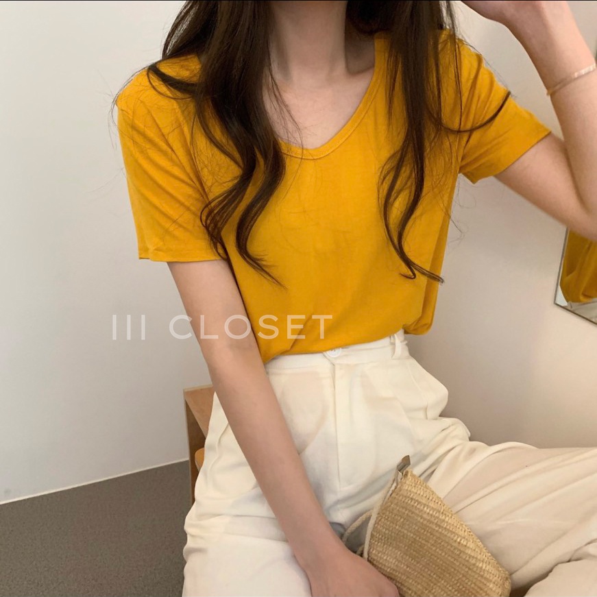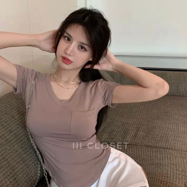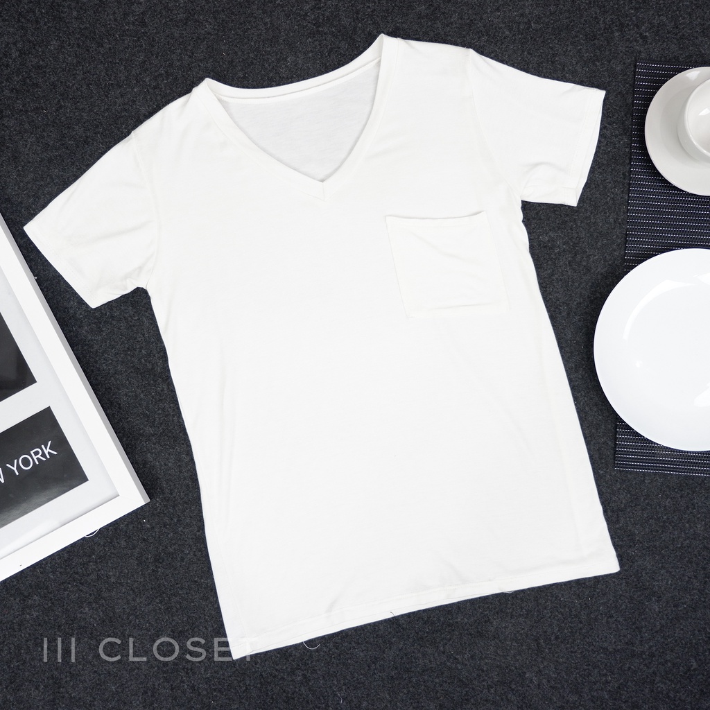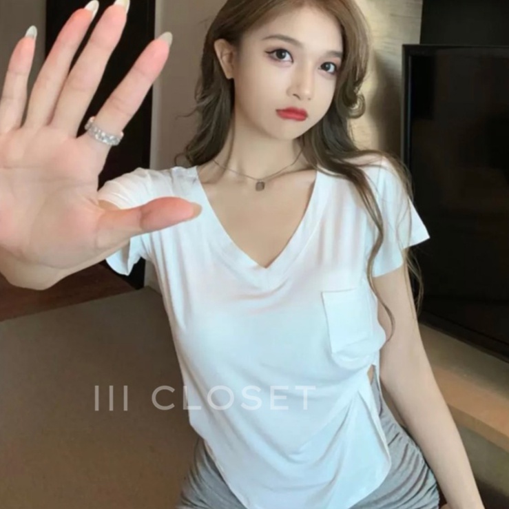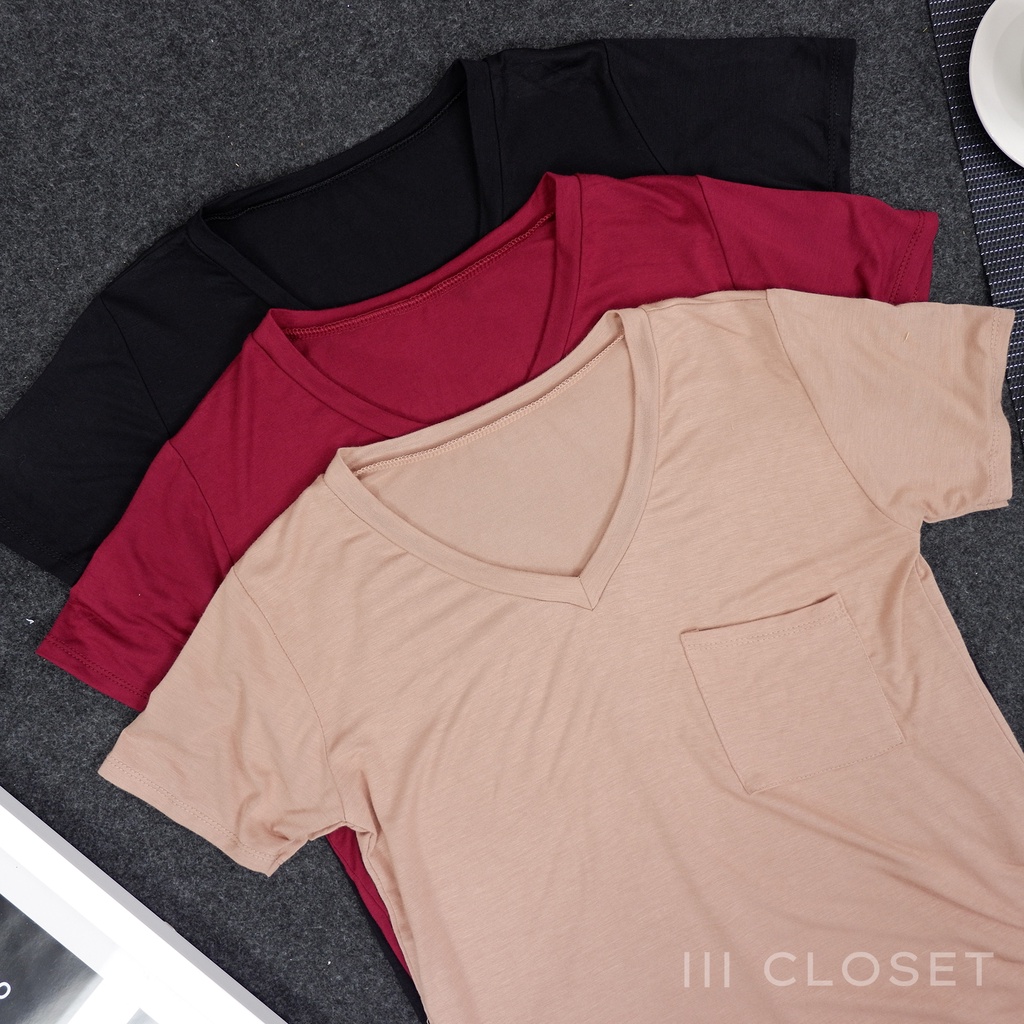 เสื้อยืด lll Freesize lll BA024 คอวี กระเป๋าหน้า เนื้อผ้าเรย่อน ผ้าดี หนา เด้ง ใส่สบาย ไม่ร้อน