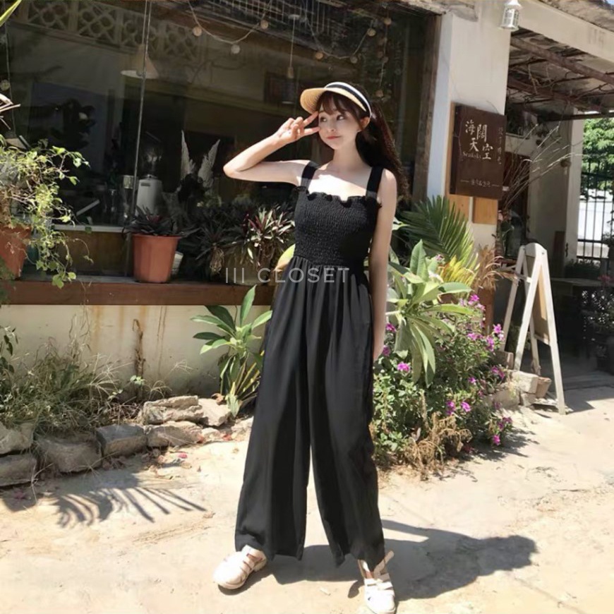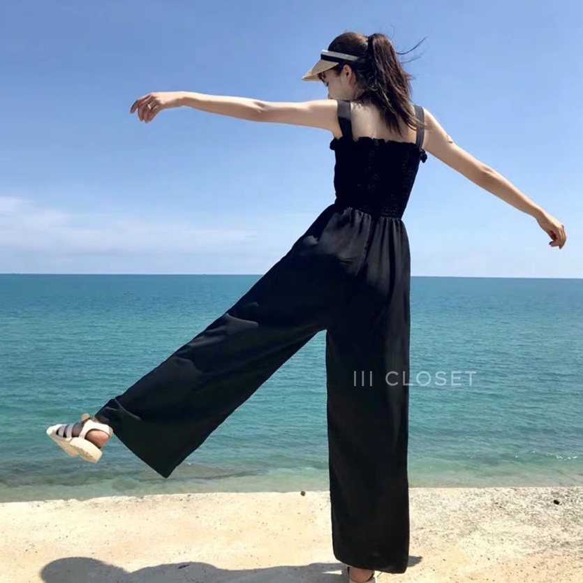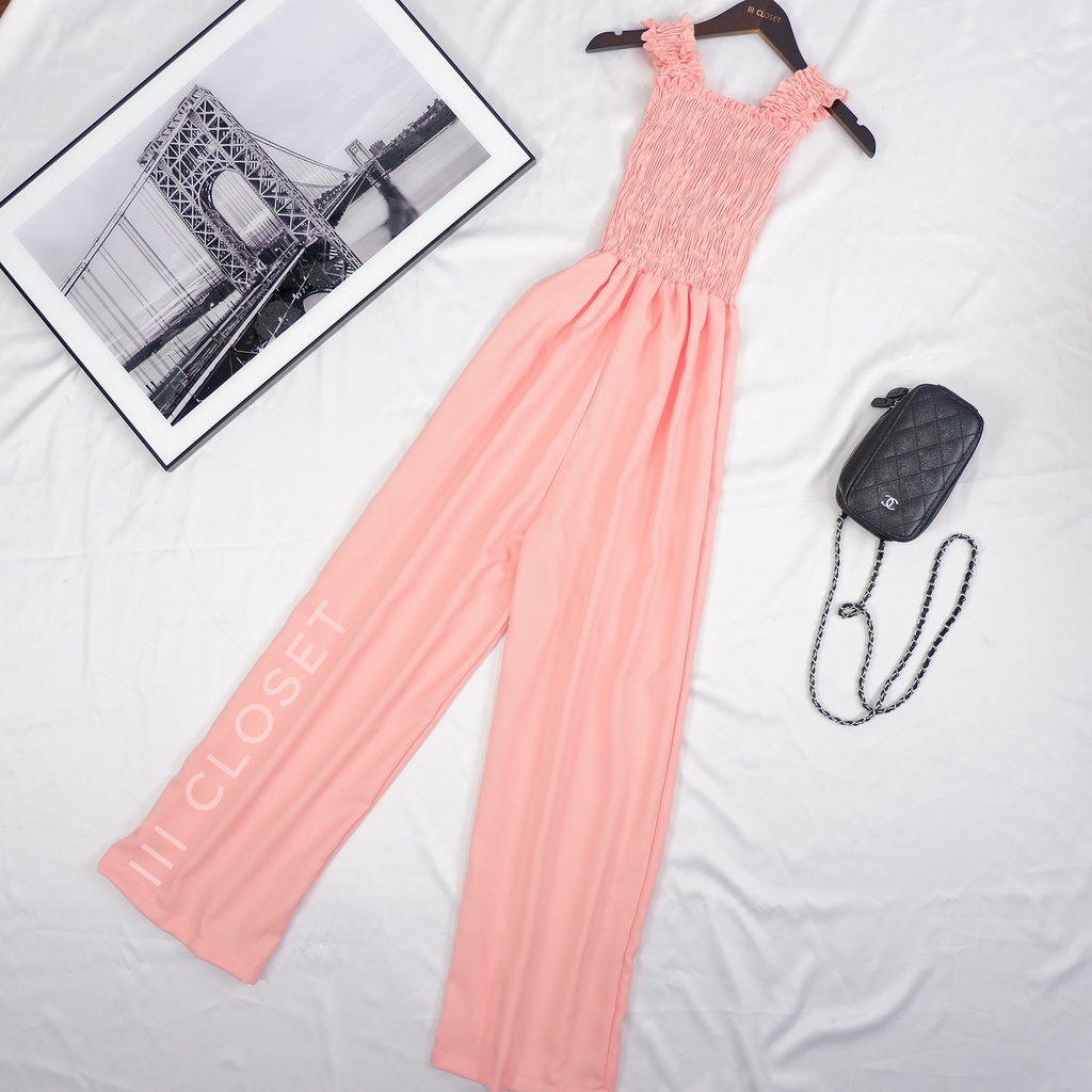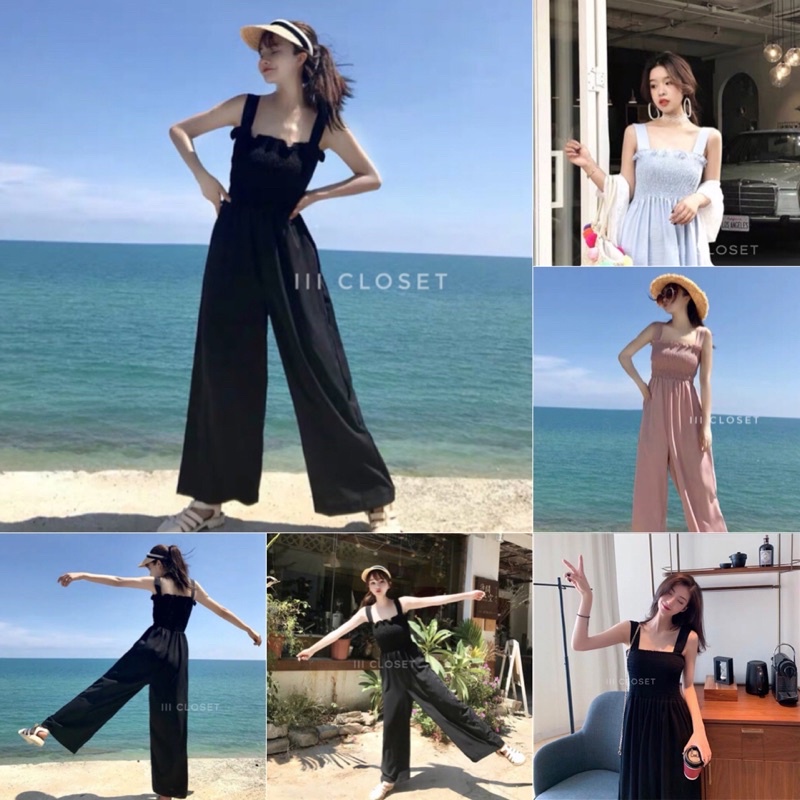 จั๊มสูท lll Freesize lll PE017 สายเดี่ยว ขายาว สม็อกอก ผ้าโฟเวย์