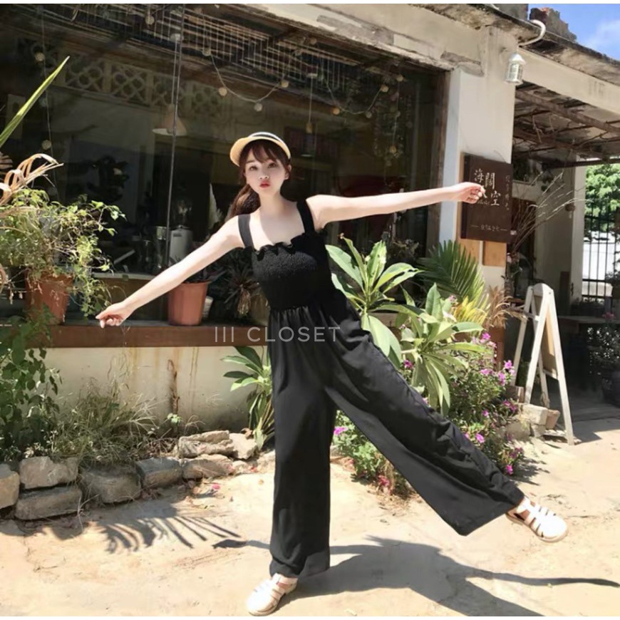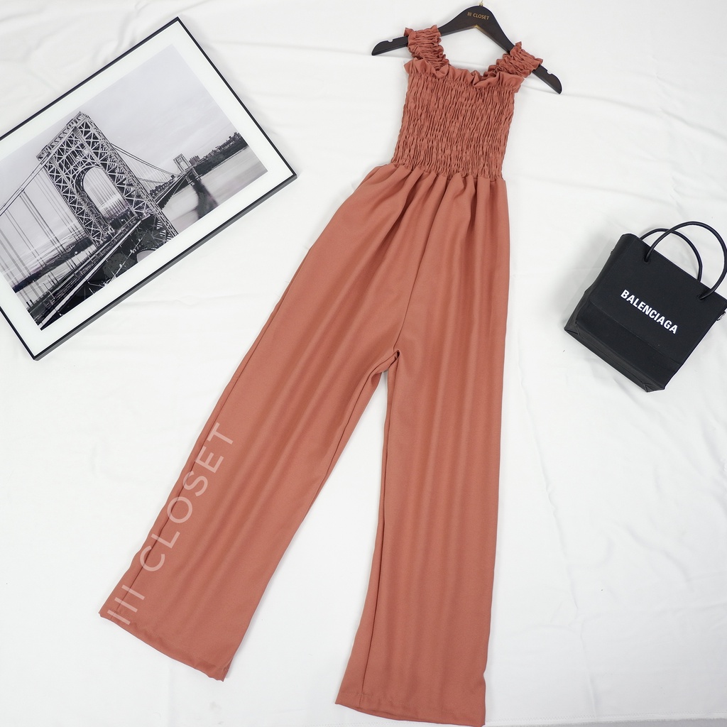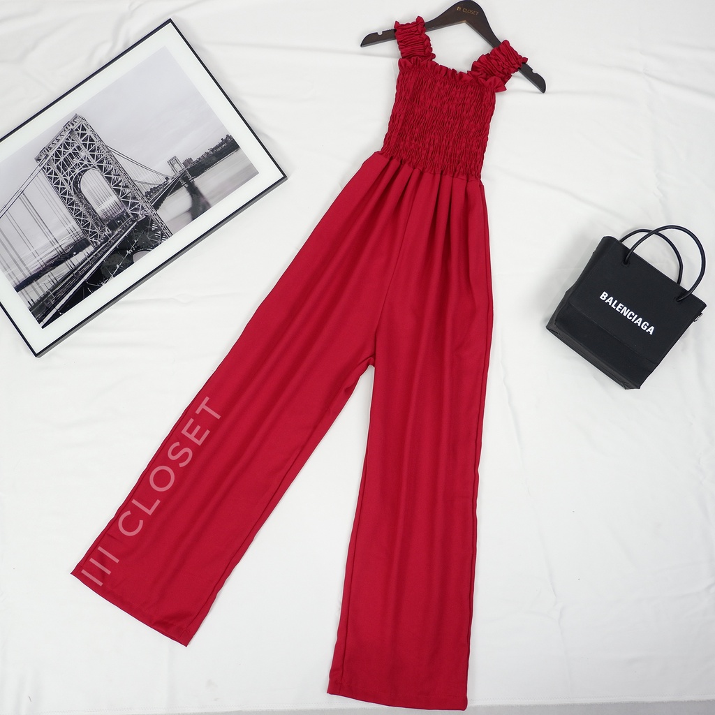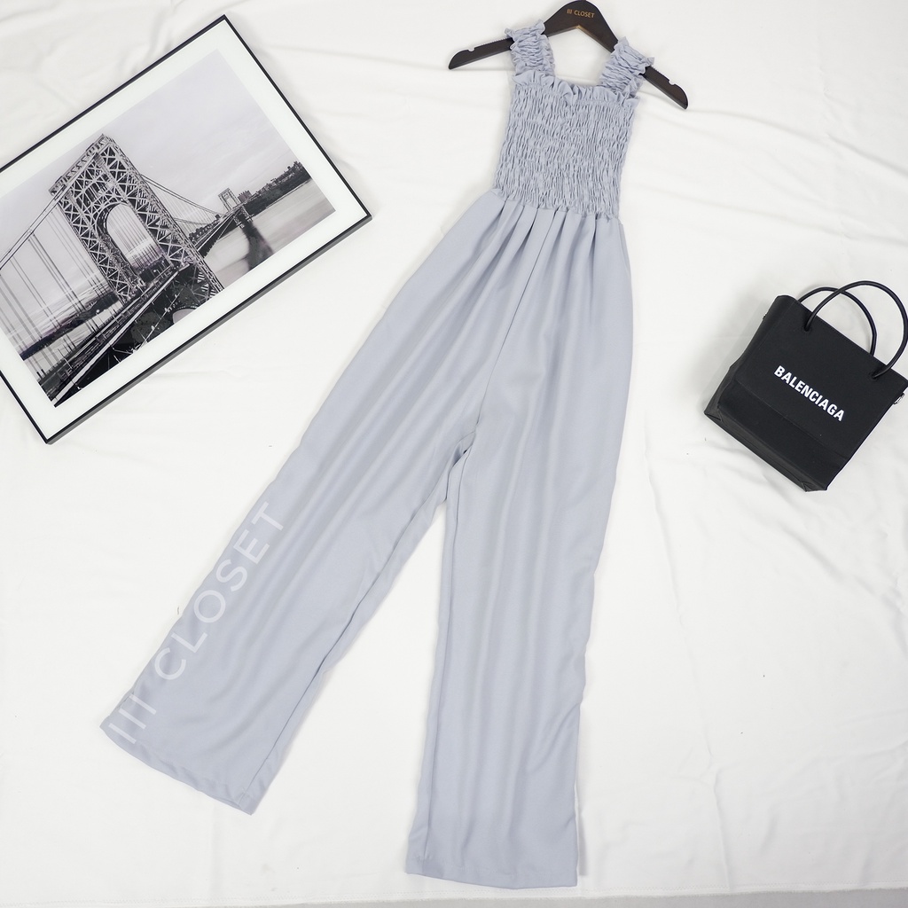 จั๊มสูท lll Freesize lll PE017 สายเดี่ยว ขายาว สม็อกอก ผ้าโฟเวย์