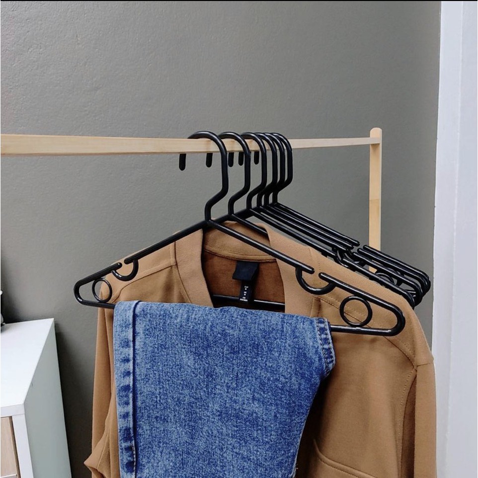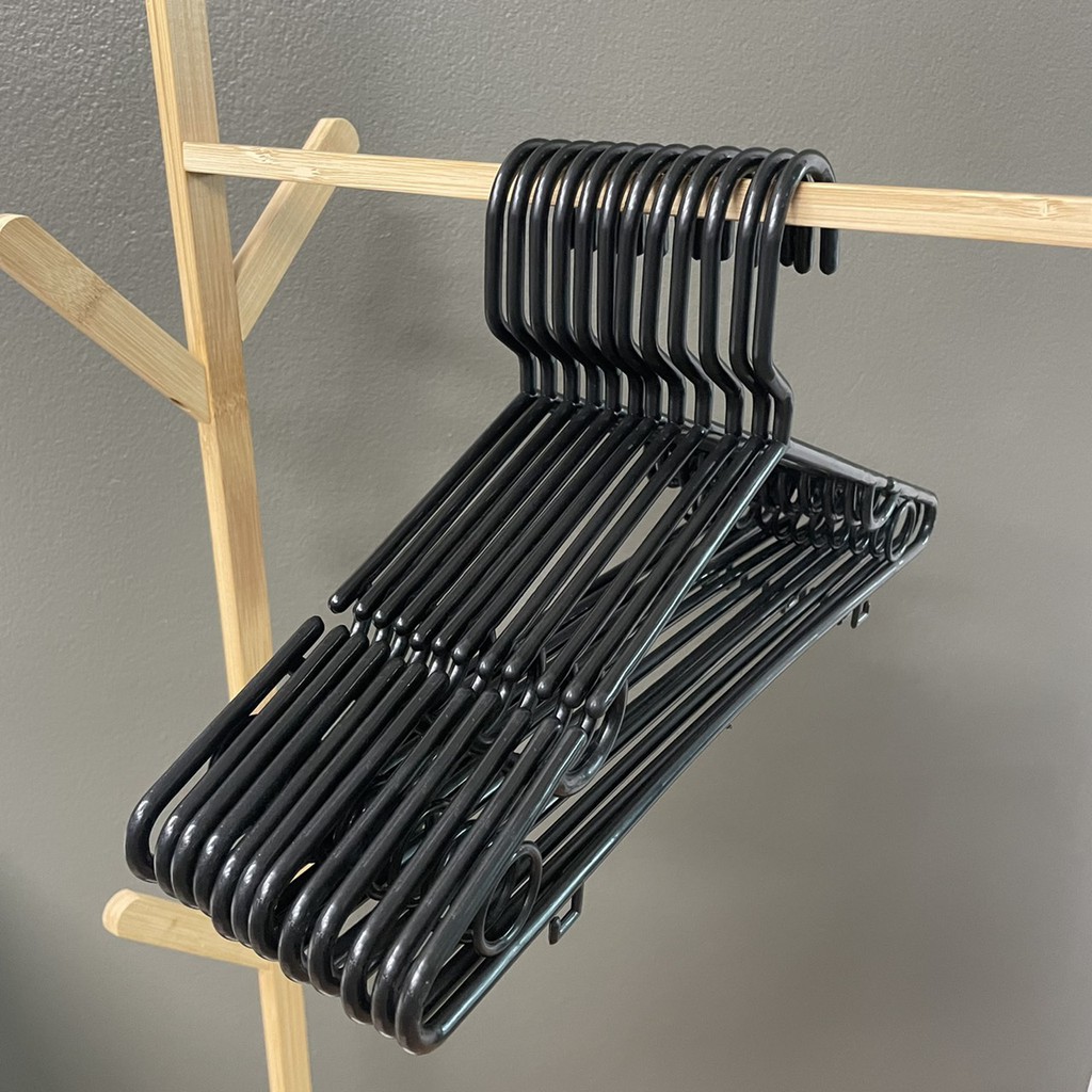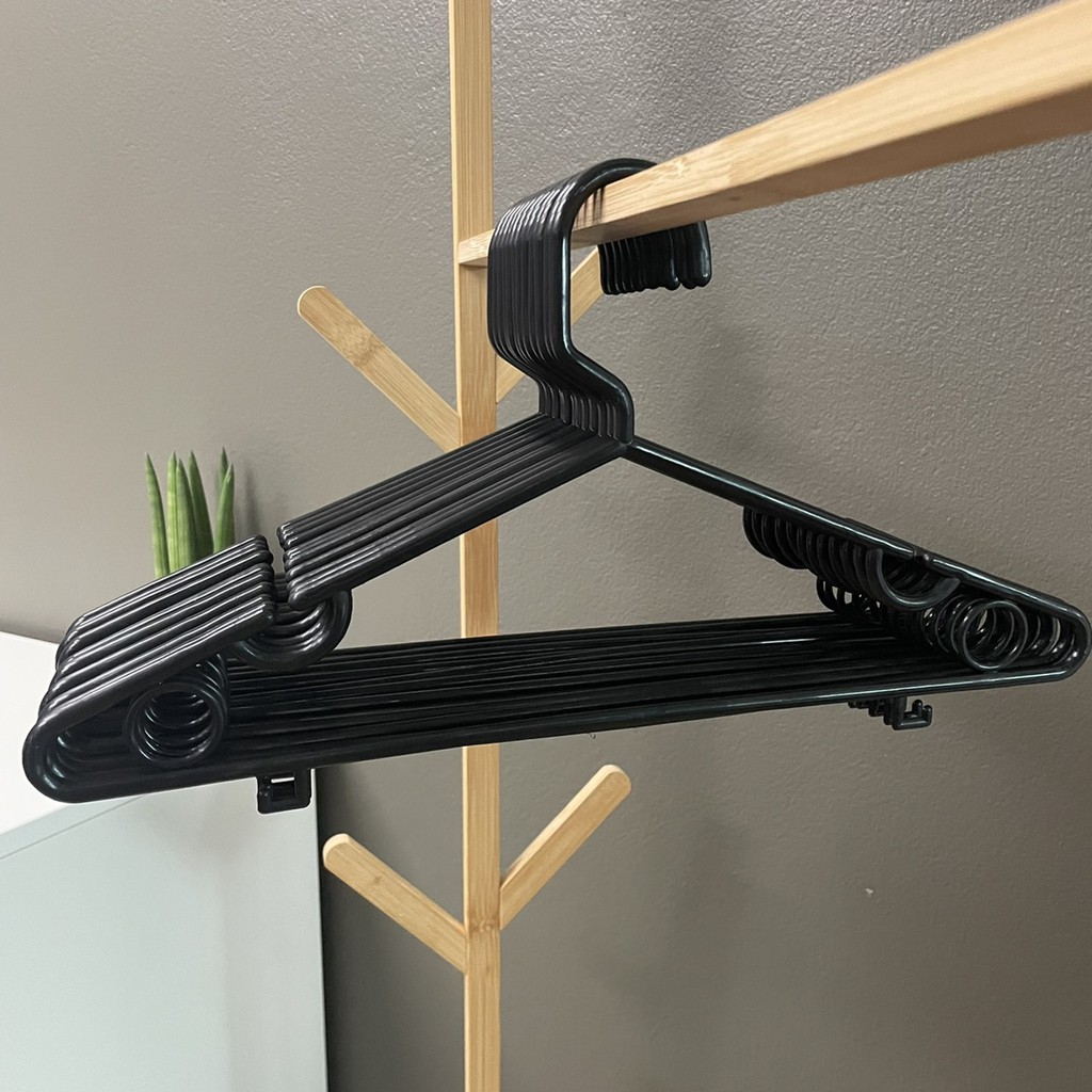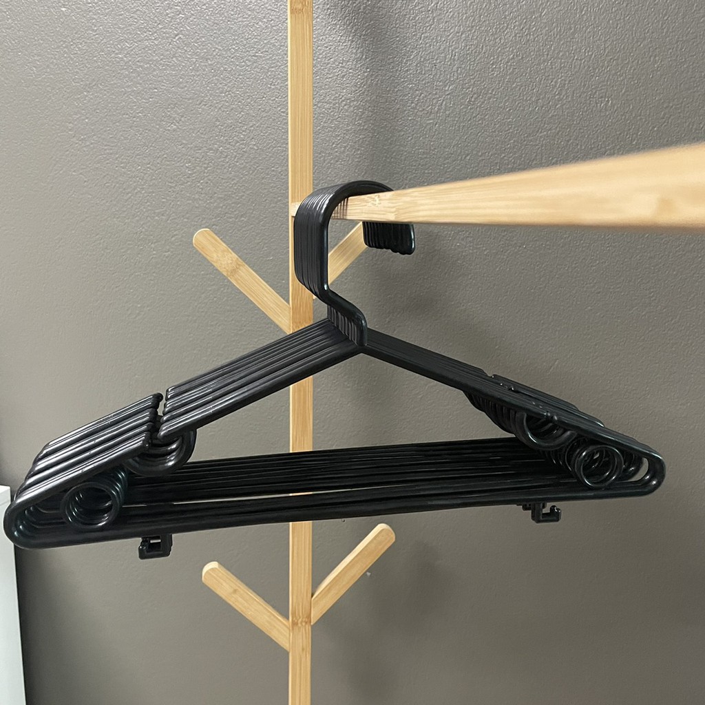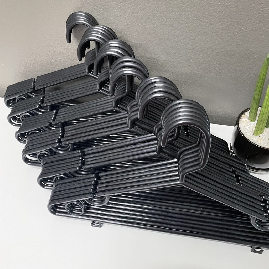 ไม้แขวนเสื้อ สีดำ 6 แพ๊ค ยกลัง 36 ชิ้น ไม้แขวนเสื้อพลาสติก ราคาถูก #No.46 x 6 ดำ