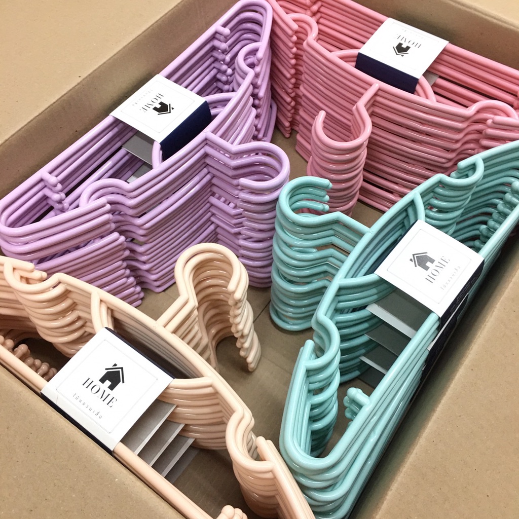 ไม้แขวนเสื้อ 24 ชิ้น สีพาสเทล น่ารัก ไม้แขวนพลาสติก หนา 8 มิล # No.88 พาสเทล x4