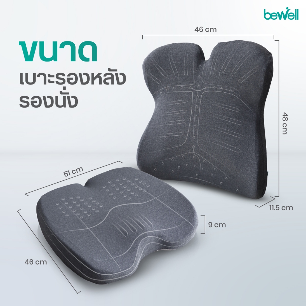 Bewell ERGOCUSHION PLUS เซ็ตเบาะรองหลังและเบาะรองนั่งเพื่อสุขภาพ ป้องกันออฟฟิศซินโดรม รับประกัน 3 ปี