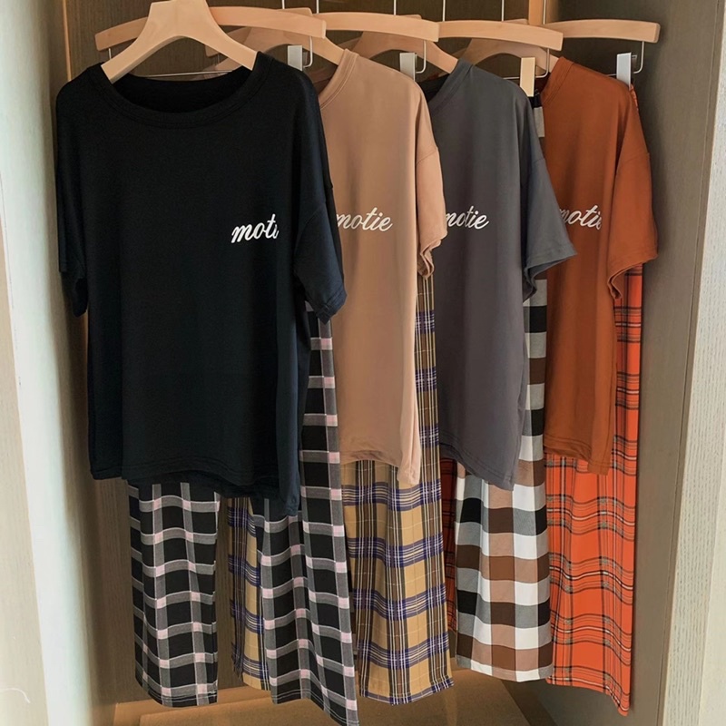 พร้อมส่ง✅ชุดเซ็ท2ชิ้นเสื้อ+กางเกงลายสก๊อต🖤ชุดลำลองผ้านิ่มใส่สบายราคาถูก