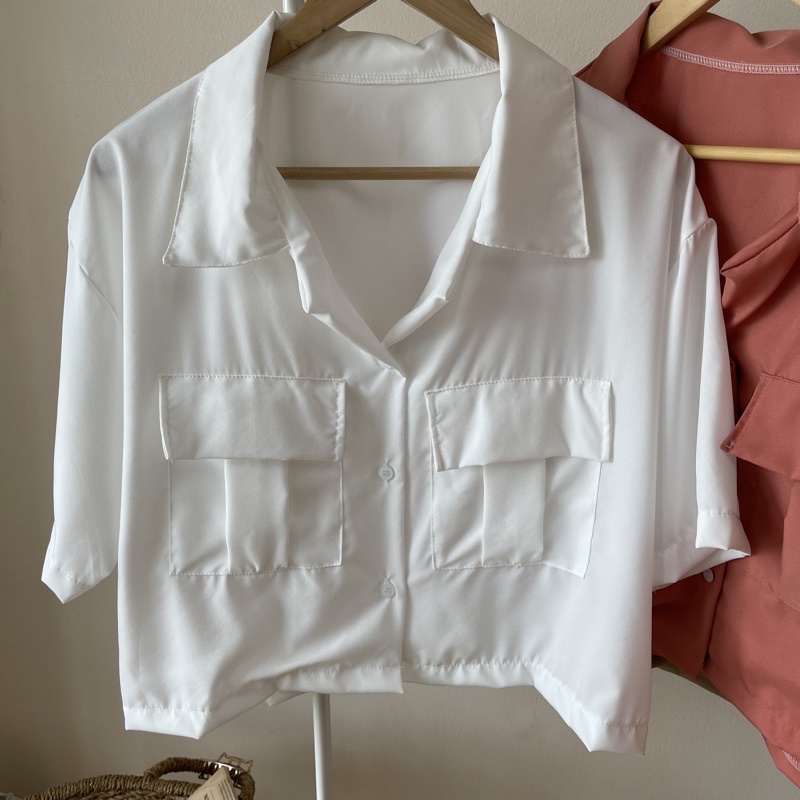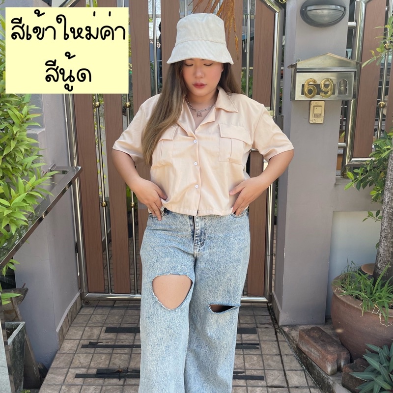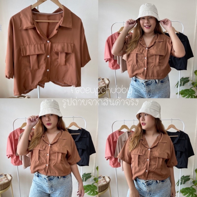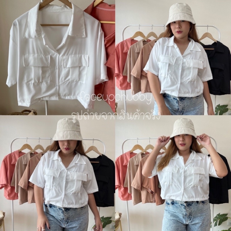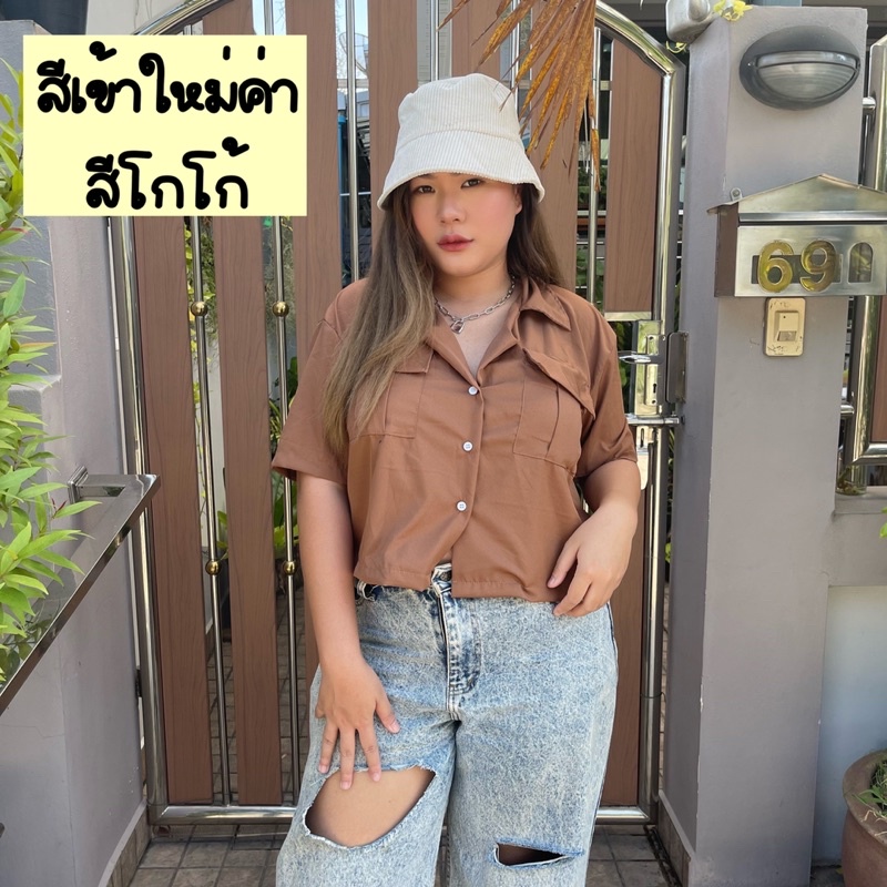 ❤️สาวอวบมาทางนี้ค่า! ครอปเชิ๊ตสไตล์มินิมอล ไซส์ใหญ่ อก48นิ้ว ผ้าไหมอิตาลี (minimal)