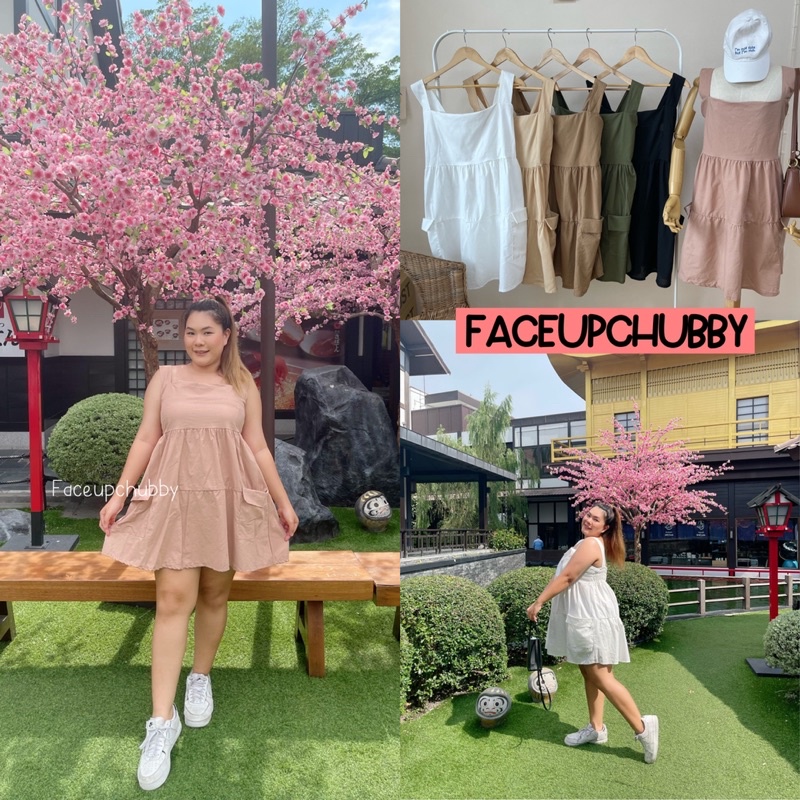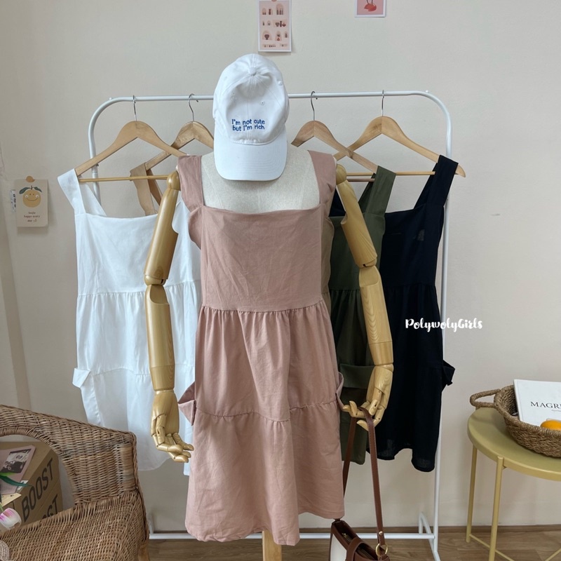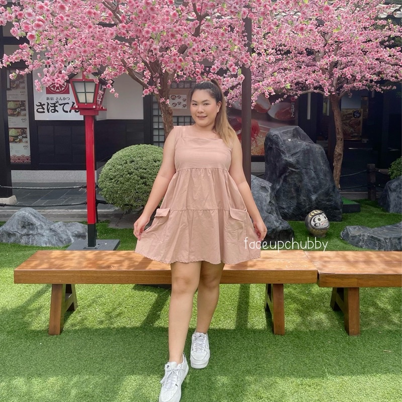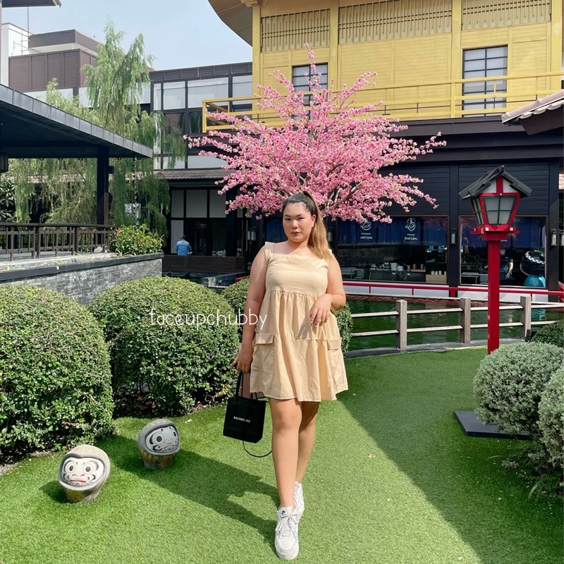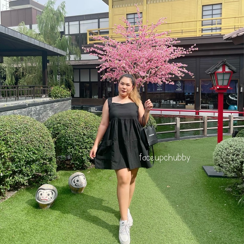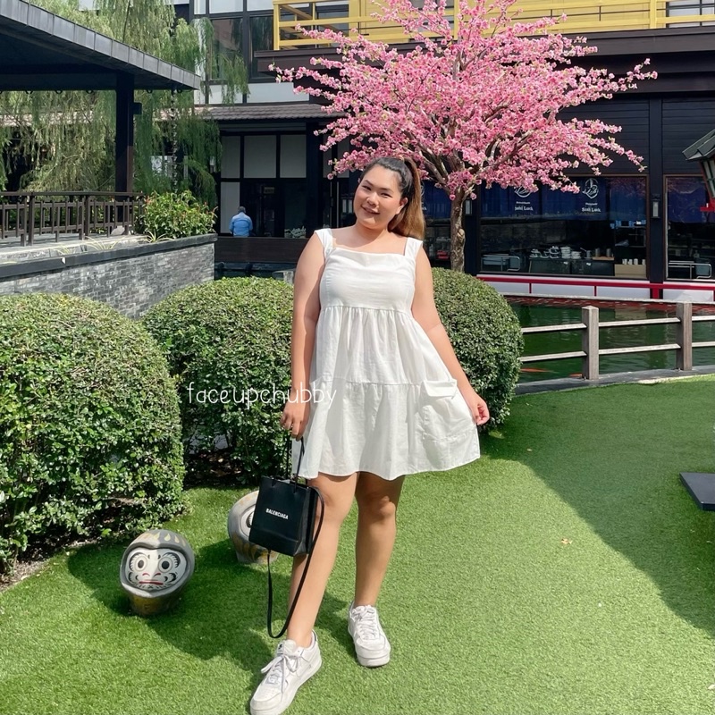 🐱FUCB🐱 เดรสแพทริเซีย เดรสสายเดี่ยวสาวอวบ เย็บกระโปรงเป็นชั้นๆ ใส่แล้วน่ารักมาก ผ้าฝ้ายลินินใส่สบาย (แพทริเซีย)
