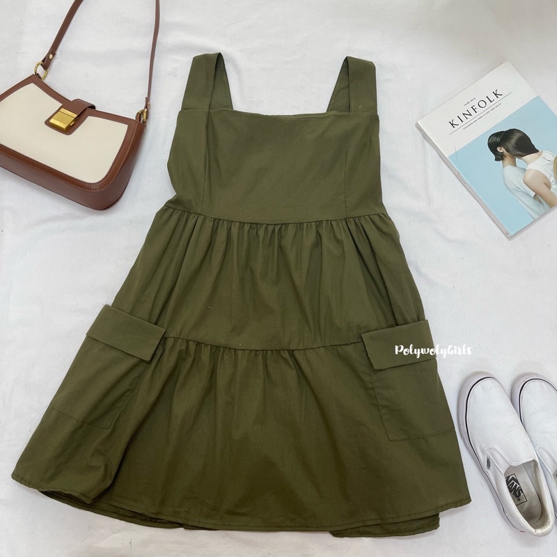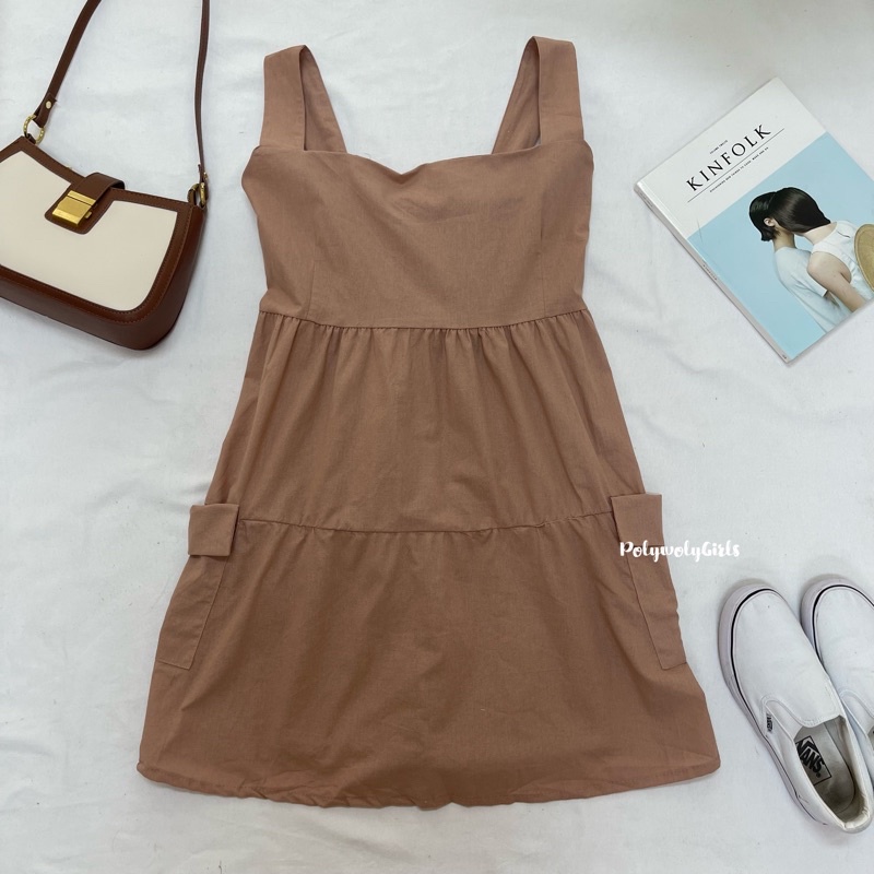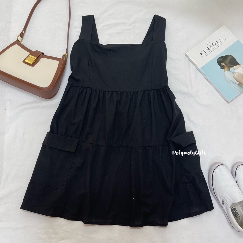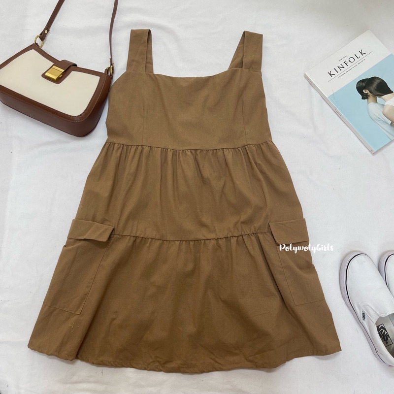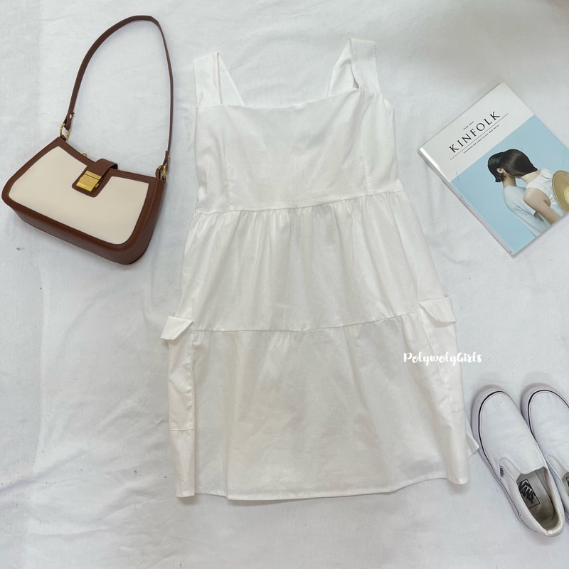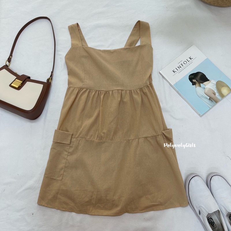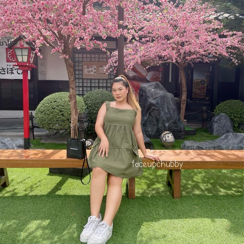 🐱FUCB🐱 เดรสแพทริเซีย เดรสสายเดี่ยวสาวอวบ เย็บกระโปรงเป็นชั้นๆ ใส่แล้วน่ารักมาก ผ้าฝ้ายลินินใส่สบาย (แพทริเซีย)