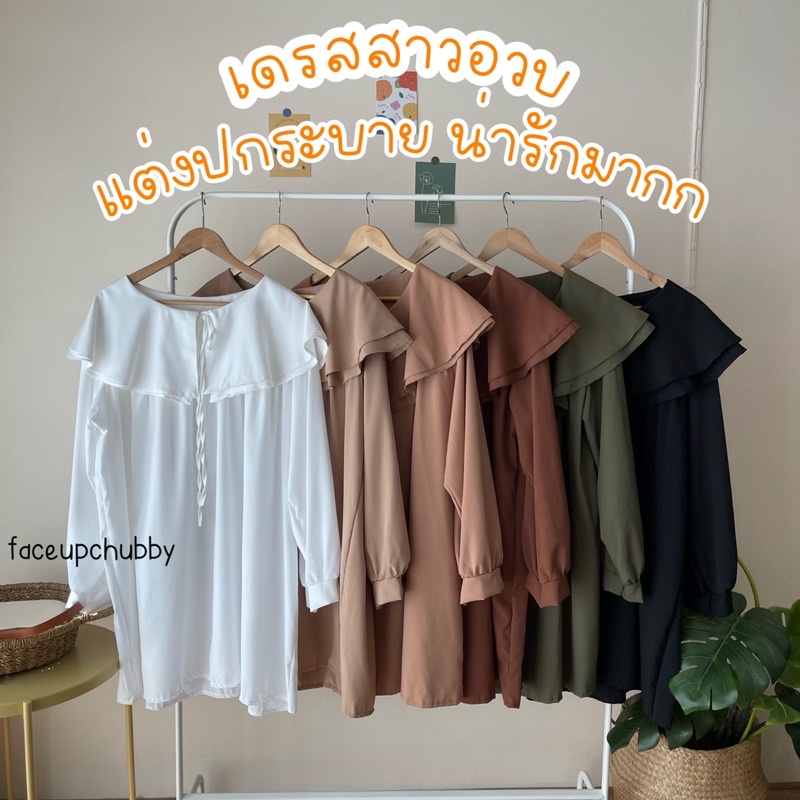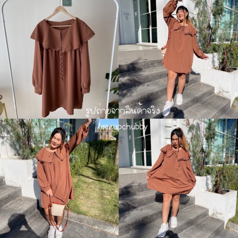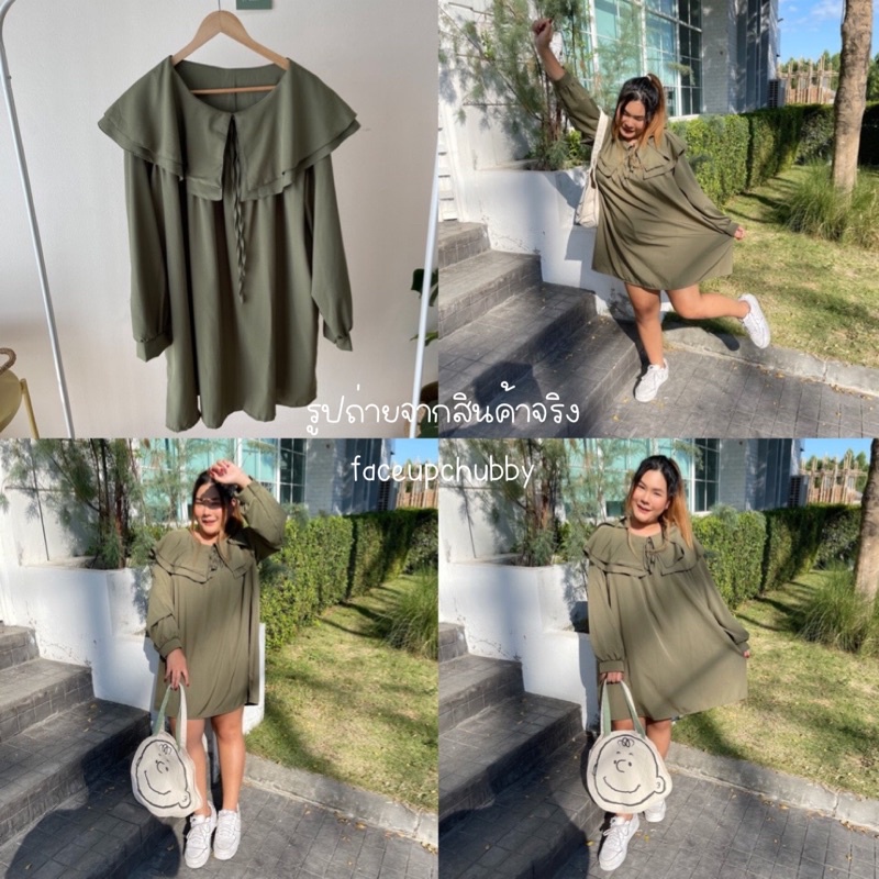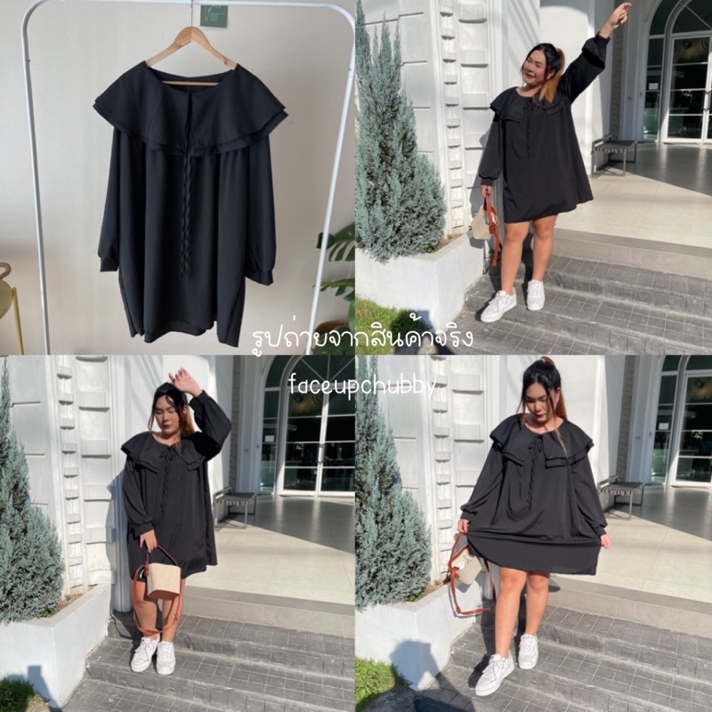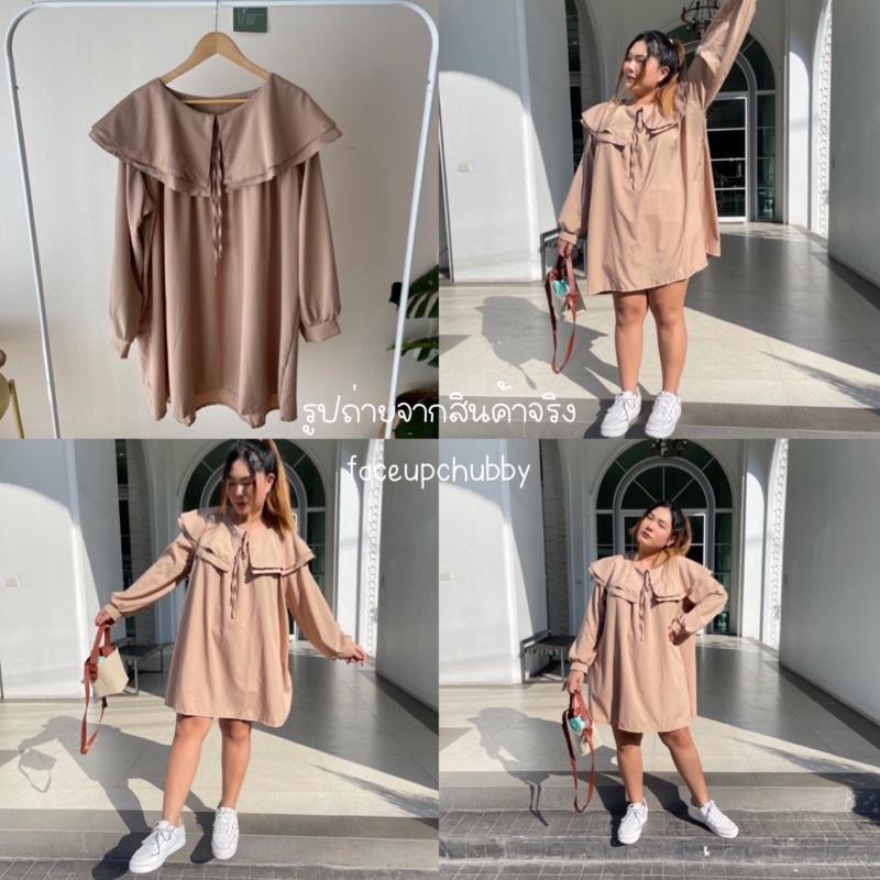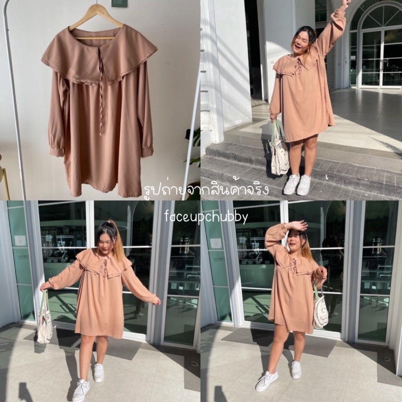 🐱FUCB🐱 มินิเดรสแขนยาวคอปกซ้อนคอบัว 2 ชั้น ทรงoversize สำหรับสาวอวบ สไตล์เกาหลีมาก ผ้าไหมอิตาลีใส่สบายค่า (ปกเดรส)