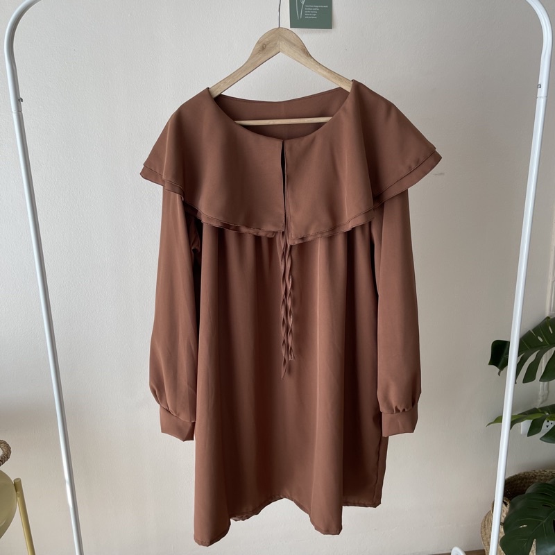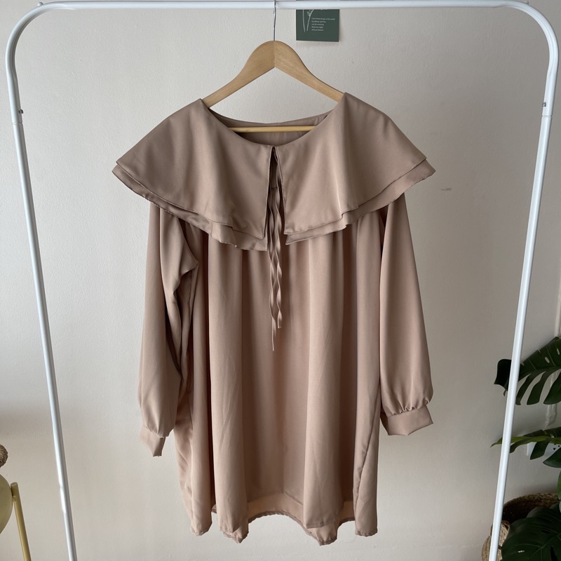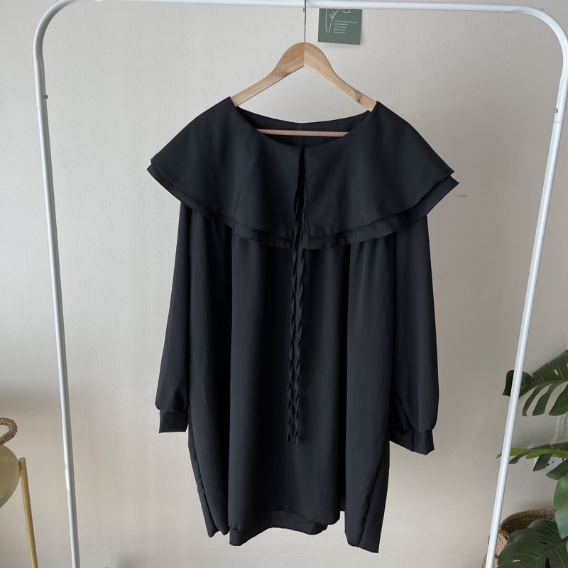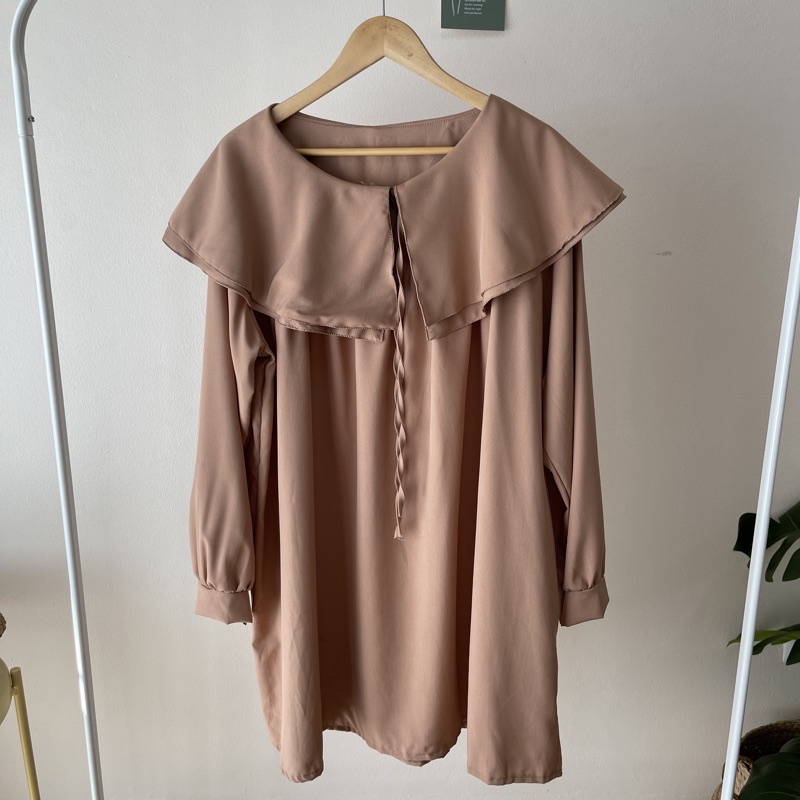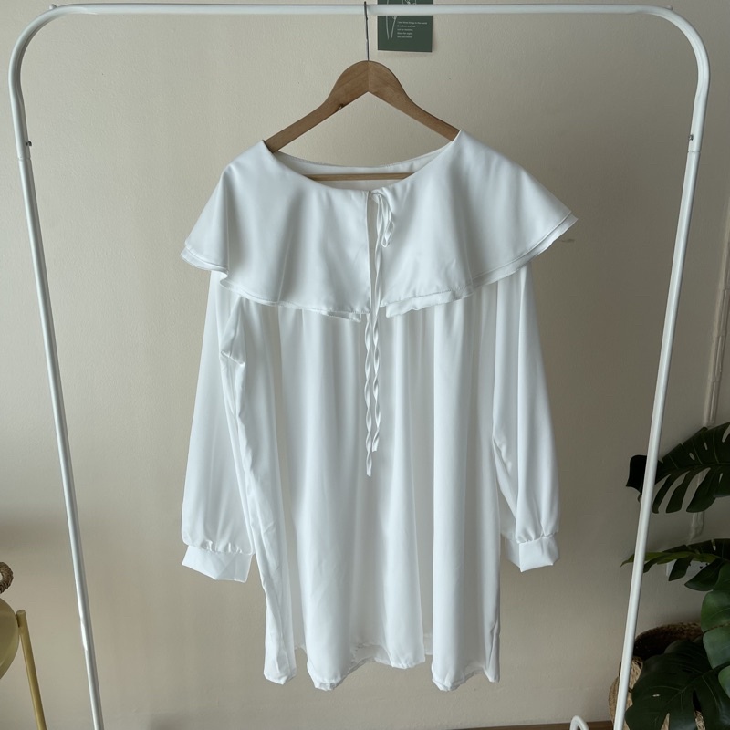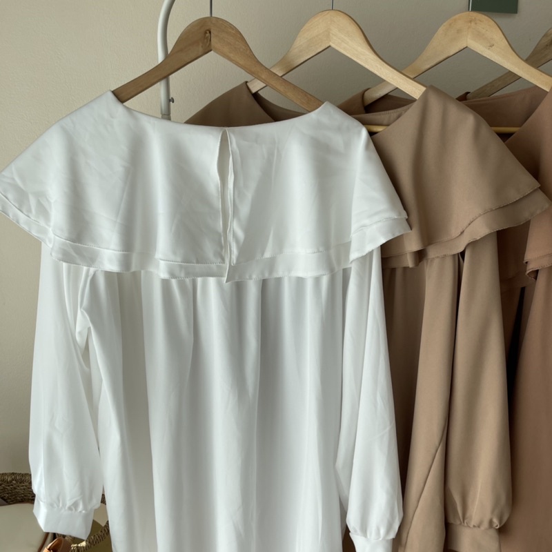 🐱FUCB🐱 มินิเดรสแขนยาวคอปกซ้อนคอบัว 2 ชั้น ทรงoversize สำหรับสาวอวบ สไตล์เกาหลีมาก ผ้าไหมอิตาลีใส่สบายค่า (ปกเดรส)