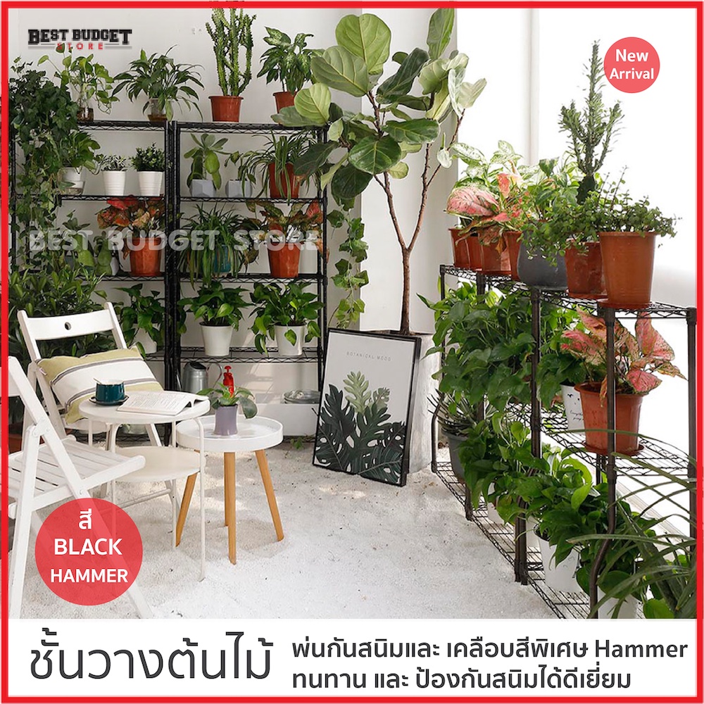 MZG-009-10 ชั้นวางต้นไม้ 4-5 ชั้น ขนาด 90x35x90-150 cm. ปรับระดับขึ้น-ลงได้ สีพิเศษดำ Hammerกันสนิมได้ดี แข็งแรงคงทน