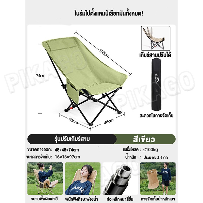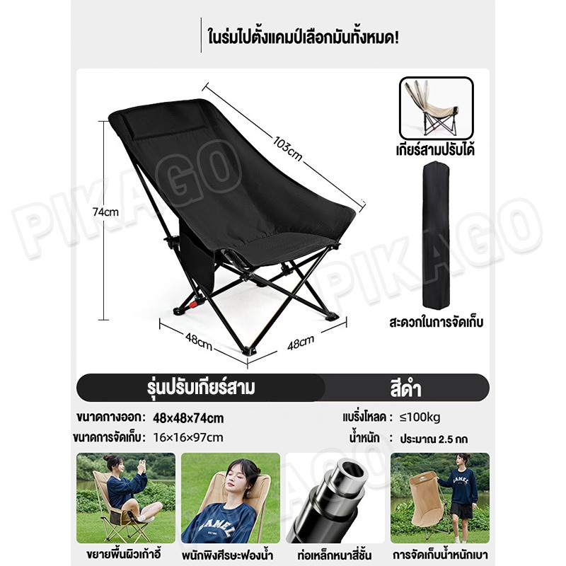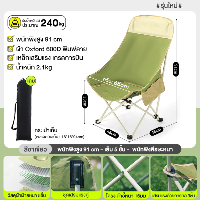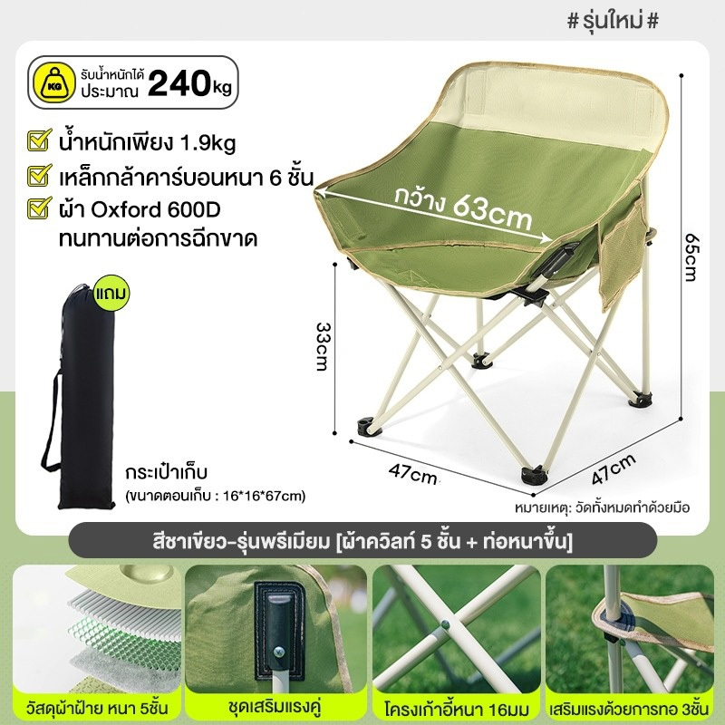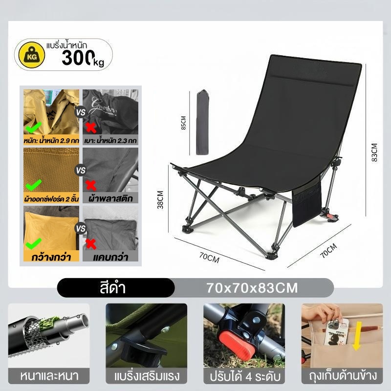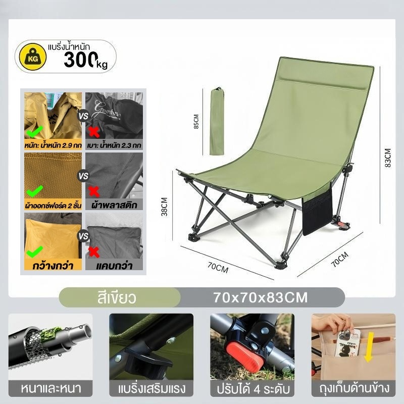 เก้าอี้แคมป์ปิ้ง เก้าอี้ส นามพับได้ แบบพกพา แถมถุงจัดเก็บ ท่ออลูมิเนียมหนา รับน้ำหนัก300กก