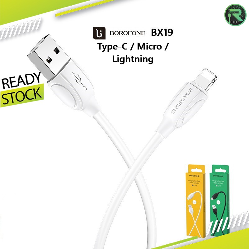 Borofone BX19 2.4A สายชาร์จไอโฟน สายชาร์จเร็วสําหรับ USB to Type-C ไมโคร (สีขาวสีดํา 1 เมตร)