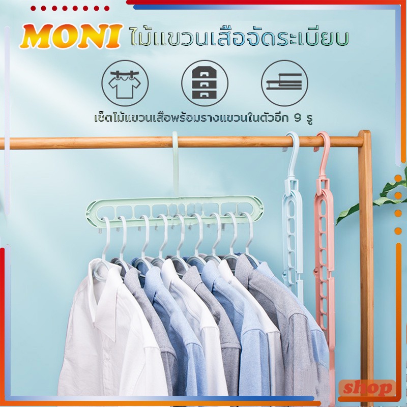 ไม้แขวนเสื้อ9หลุม มีให้เลือก หมุนได้ 360 องศา ประหยัดพื้นที่ ไม้แขวนผ้า 9 in 1 4 สี