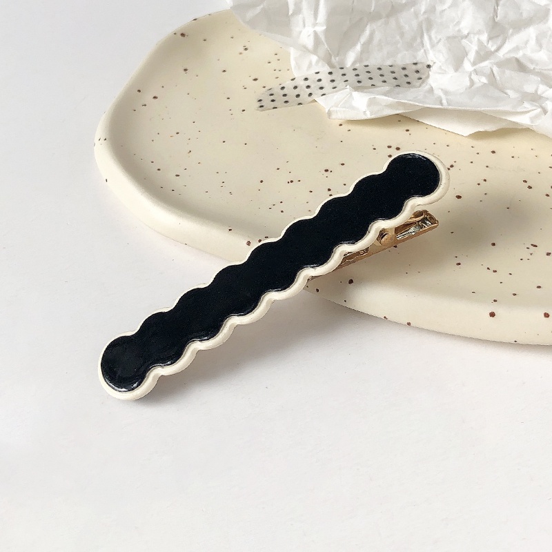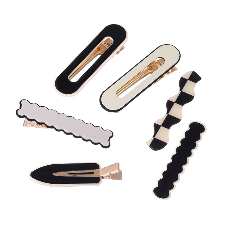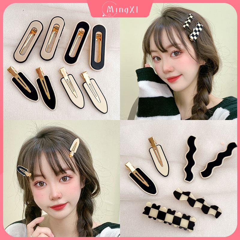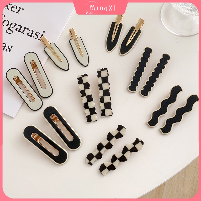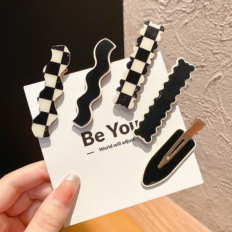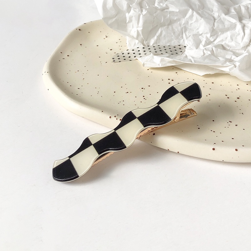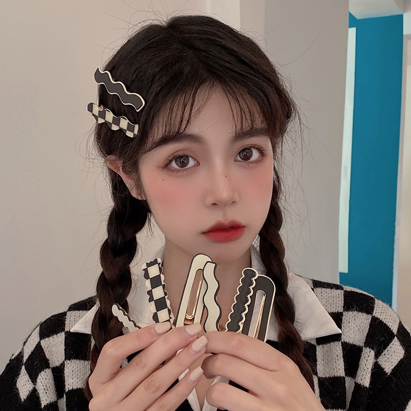 กิ๊บติดผมเรซิ่น อัลลอย ลายสก๊อต สีดํา และสีขาว สไตล์เกาหลีเรโทร สําหรับผู้หญิง