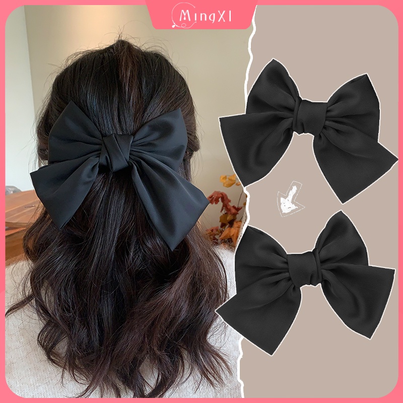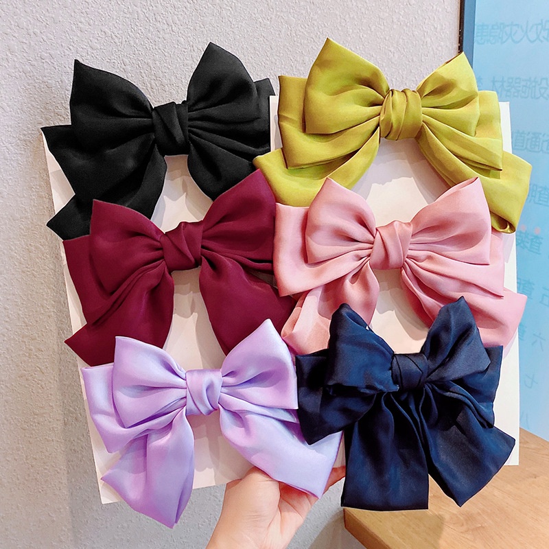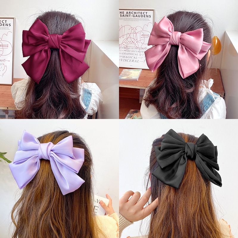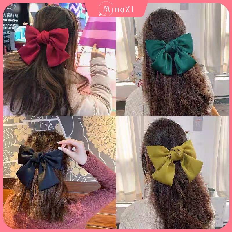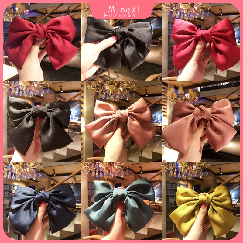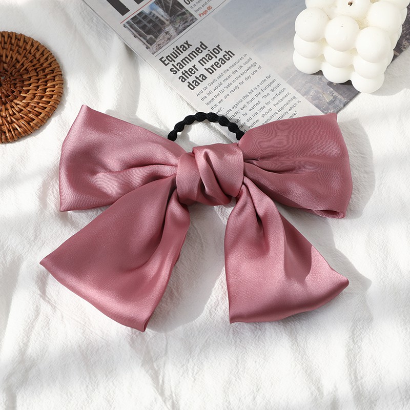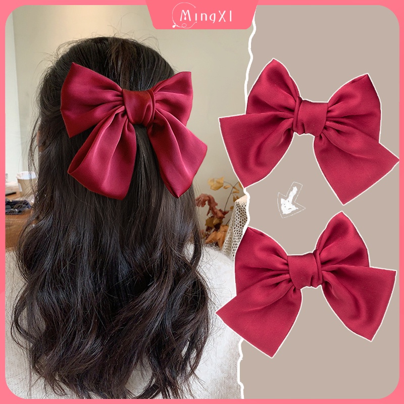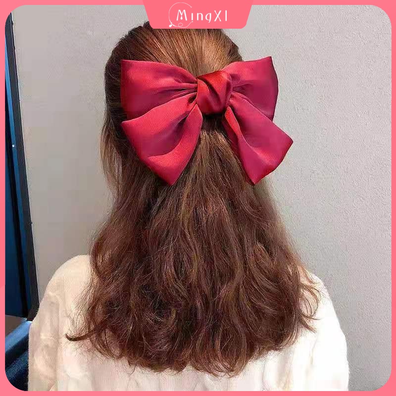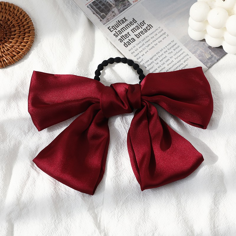 กิ๊บติดผม โบว์สีแดง สไตล์เกาหลี แฟชั่น ผ้าเงา ยางรัดผม ยางรัดผม เครื่องประดับผมผู้หญิง