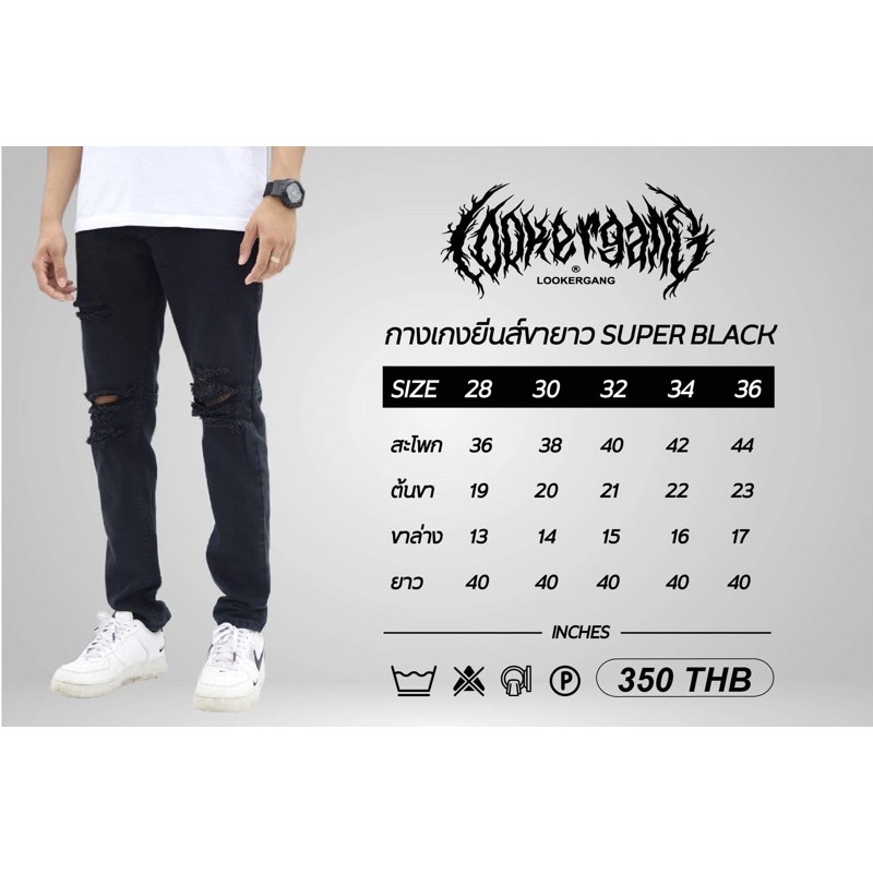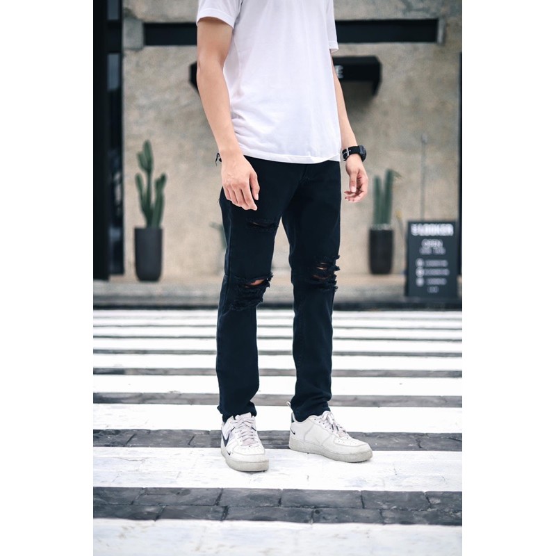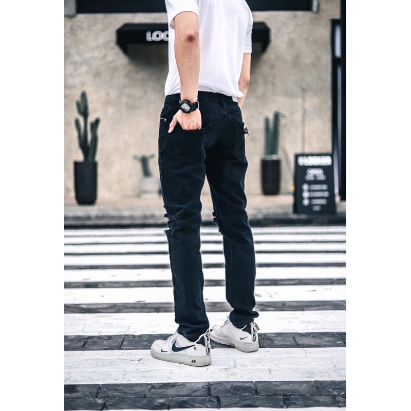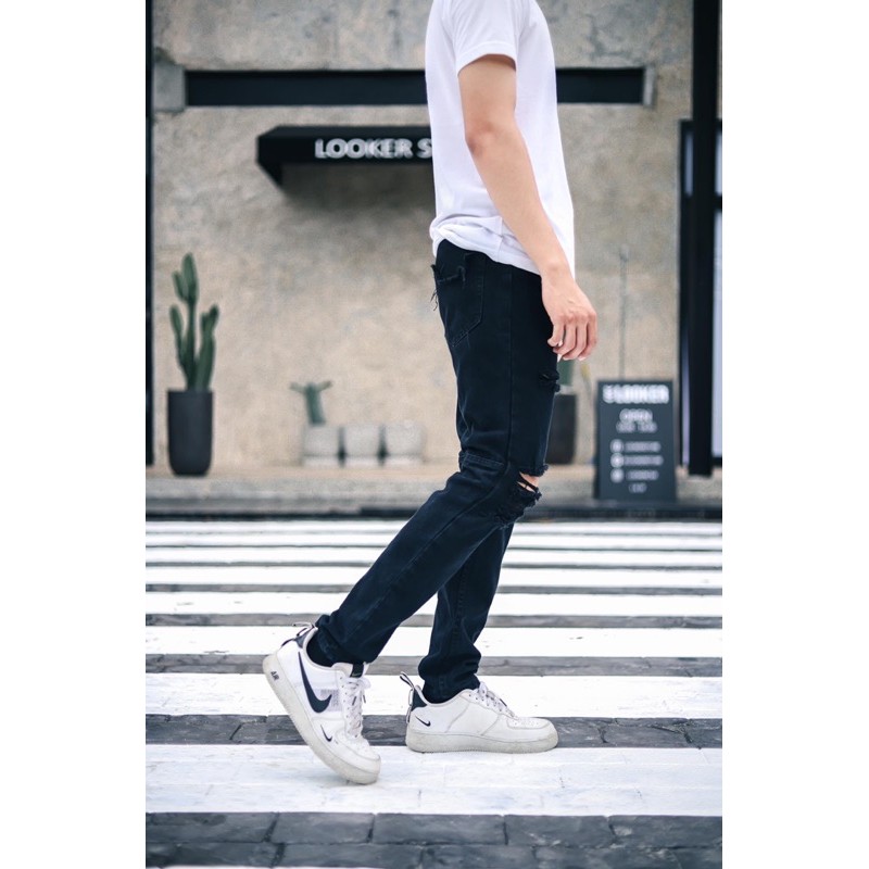 LOOKER - กางเกงยีนส์สีดำขายาว *รุ่นขาดเข่าแนวStreet*