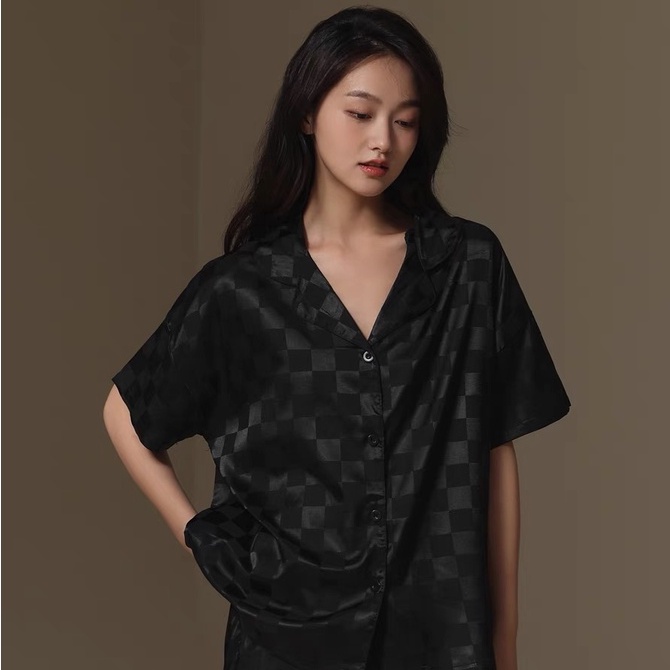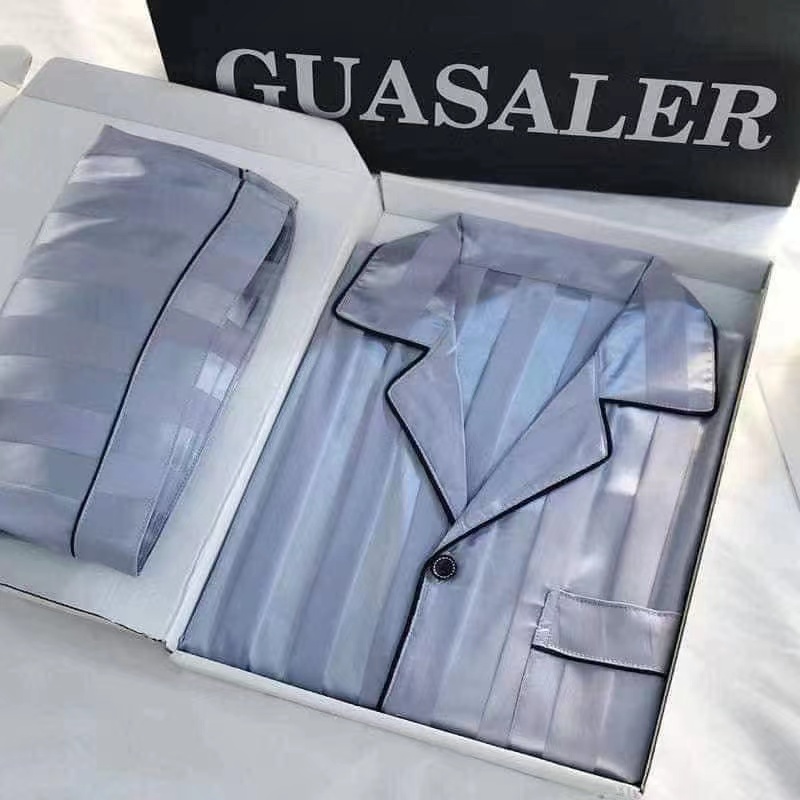 G122 มาใหม่ ★ส่งจากไทย★ชุดนอนซาตินแขนสั้นขาสั้น ชุดนอนสีพื้นลายตรง ชุดนอนแฟชั่นสไตล์เกาหลี ชุดนอนน่ารัก