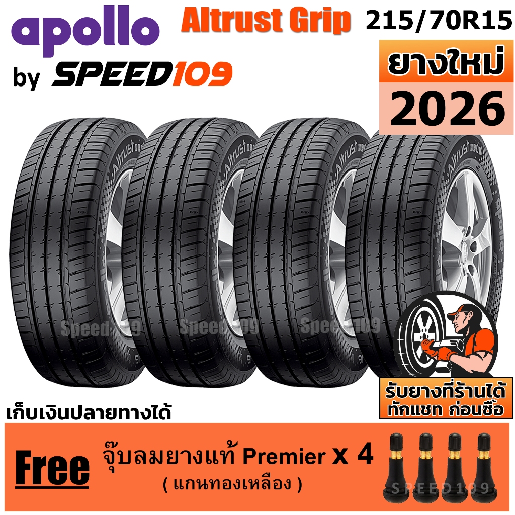 APOLLO ยางรถยนต์ รถเก๋ง, กระบะ, SUV ขอบ 14-19 นิ้ว จำนวน 4 เส้น (ปี 2024 - 2026) + ฟรี!! จุ๊บลมยางแท้ Premier 4 ตัว