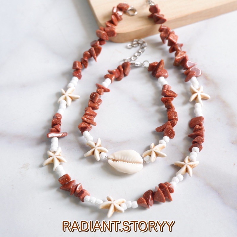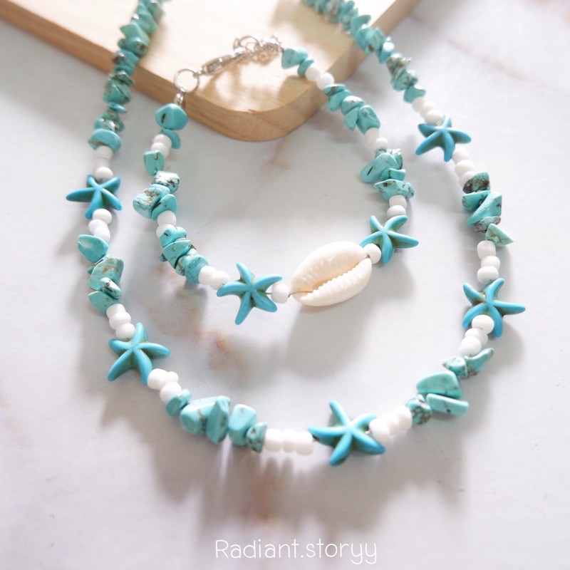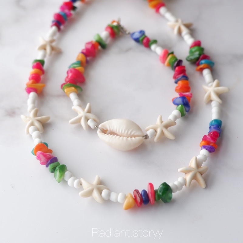 พร้อมส่งจากไทย 🇹🇭สร้อยคอ สร้อยข้อมือ ไปทะเล หินเปลือกหอยสีธรรมชาติสลับปลาดาว