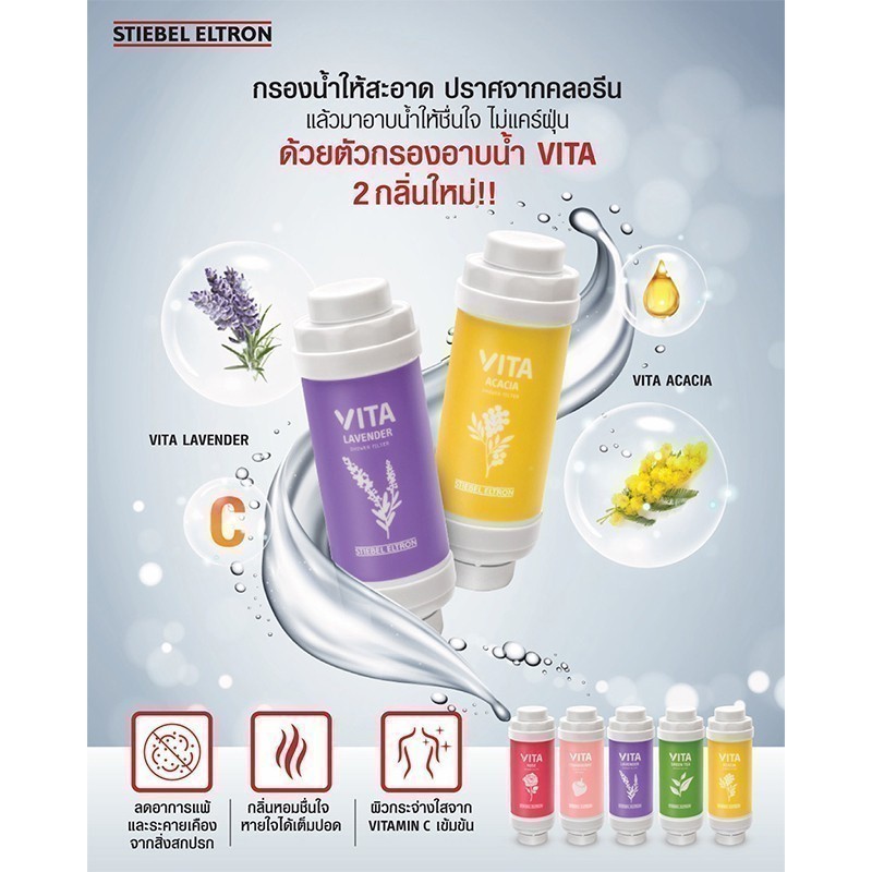 STIEBEL ELTRON ตัวกรองอาบน้ำ ไส้กรองฝักบัว VITA ลดคลอรีนและสิ่งสกปรก ติดตั้งง่าย สามารถใช้ได้กับฝักบัวปกติ