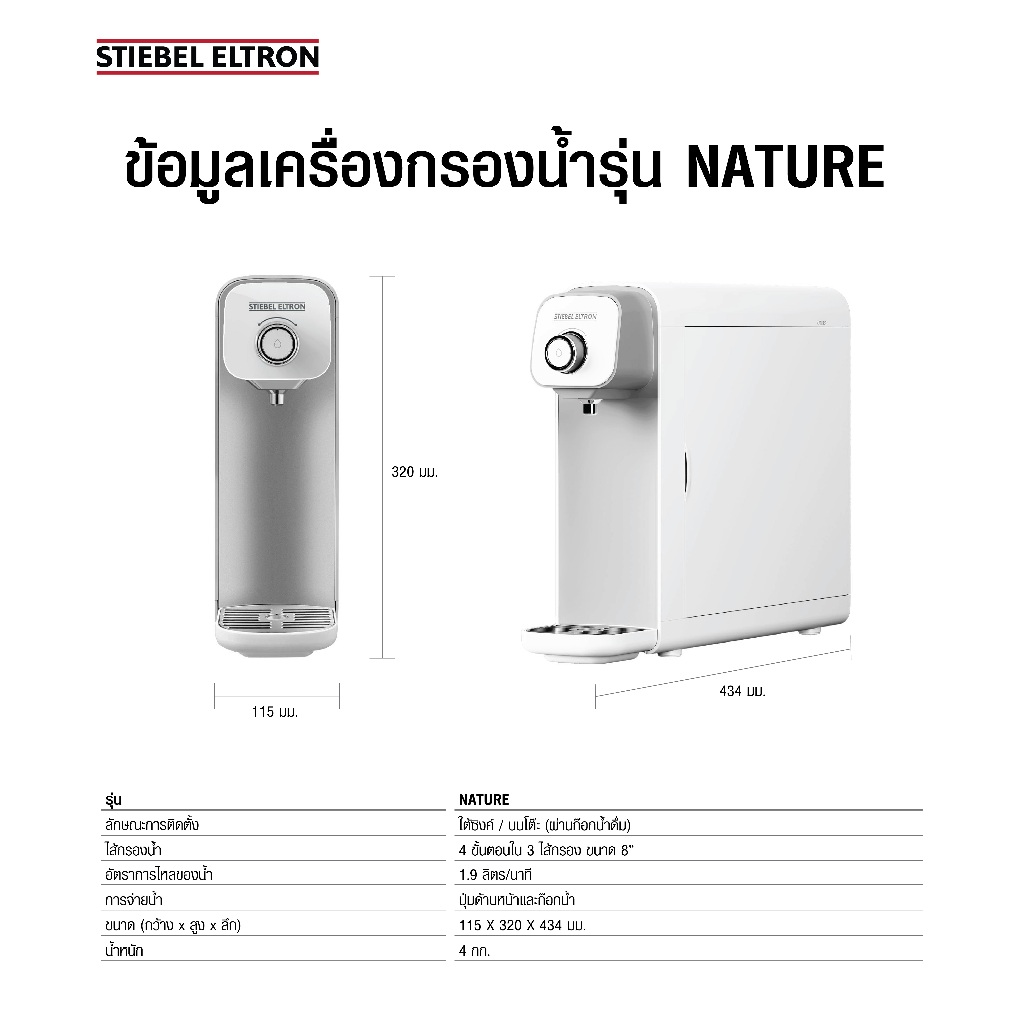 STIEBEL ELTRON เครื่องกรองน้ำดื่ม รุ่น Nature ระบบ NANO กรองได้ 4 ขั้นตอน กำจัดแบคทีเรียและไวรัส 99.99% ดีไซน์กะทัดรัด