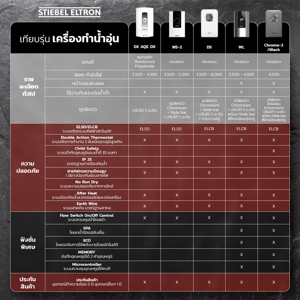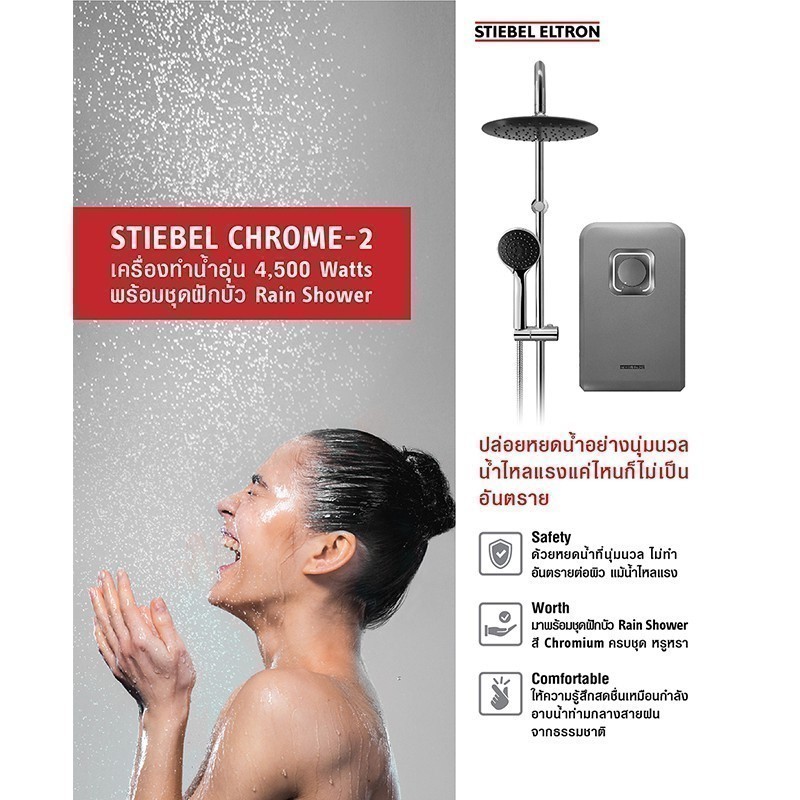 STIEBEL ELTRON เครื่องทำน้ำอุ่น ขนาด 4500 วัตต์ รุ่น STIEBEL CHROME-2 แทงค์ทองแดง หัวฝักบัว Rain Shower