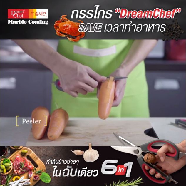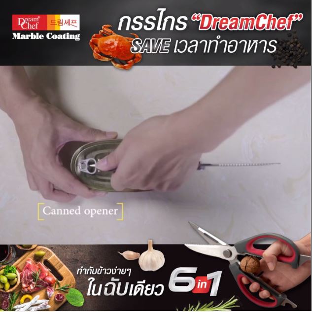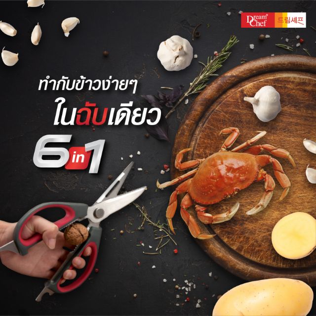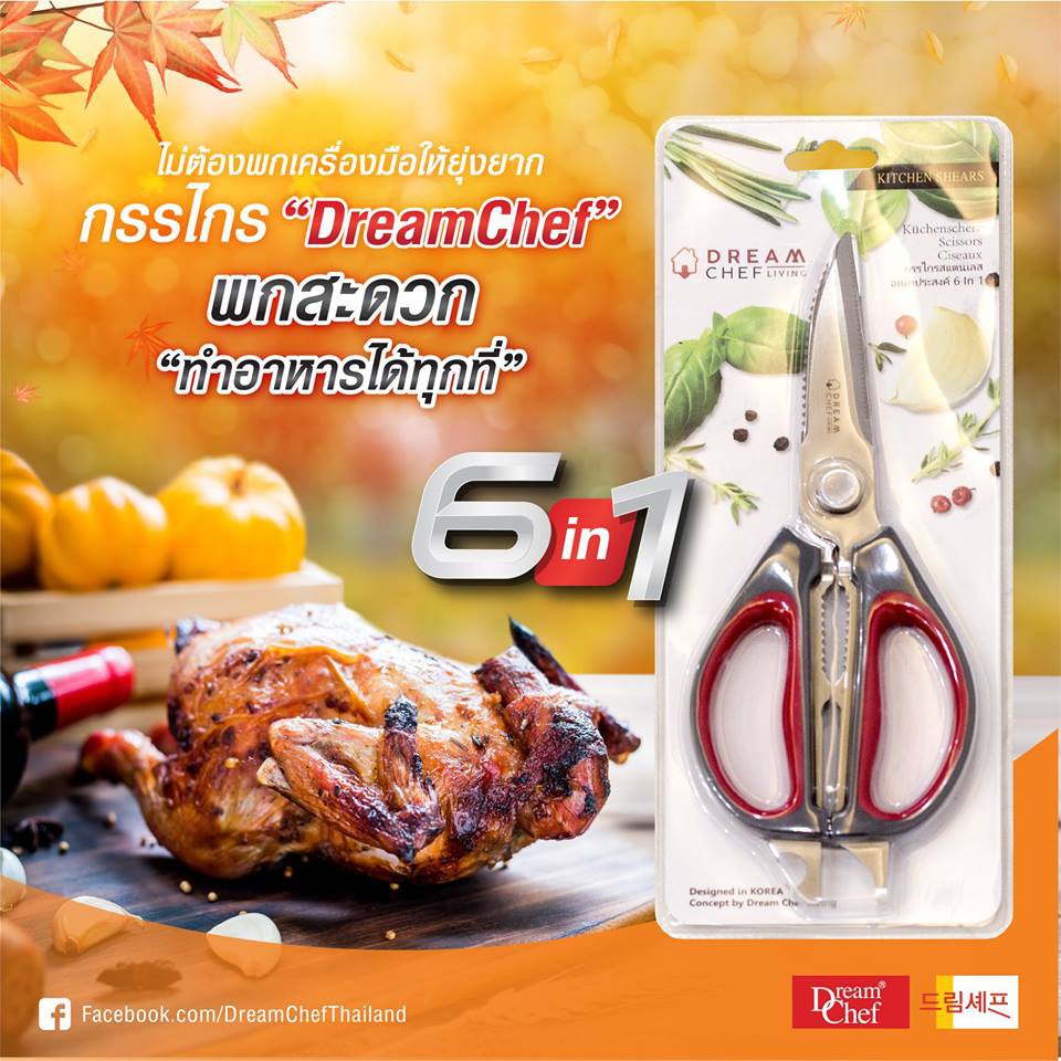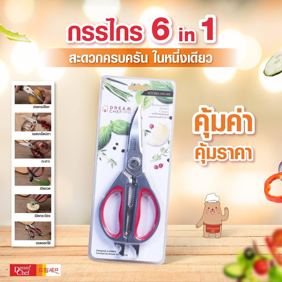 Dream Chef Living กรรไกรอเนกประสงค์ 6 In 1 ของแท้มาตรฐานเกาหลี เนื้อสแตนเลสแท้ Body ABS ทนทาน!
