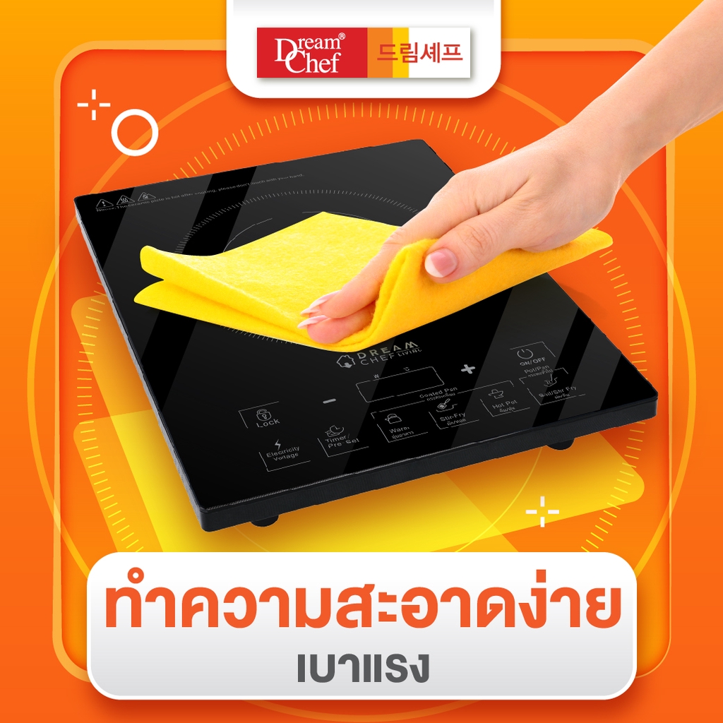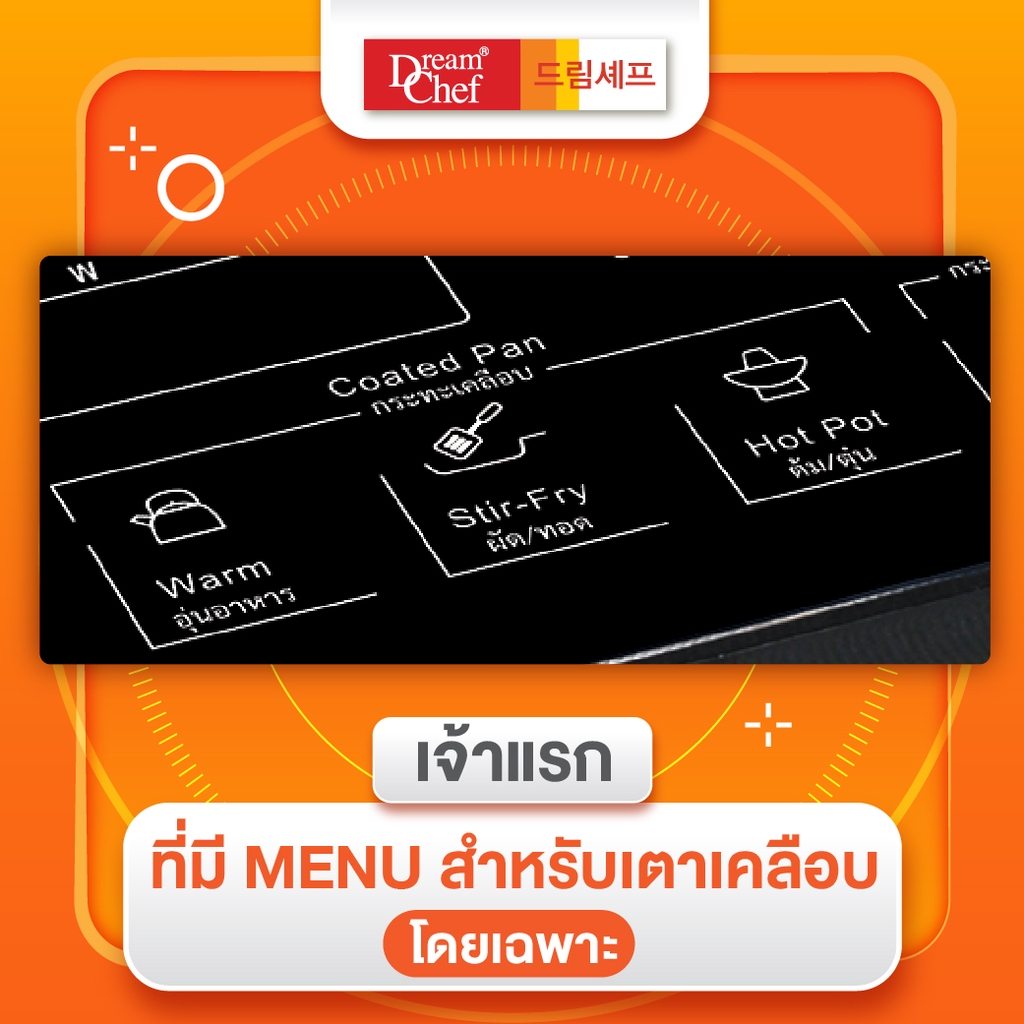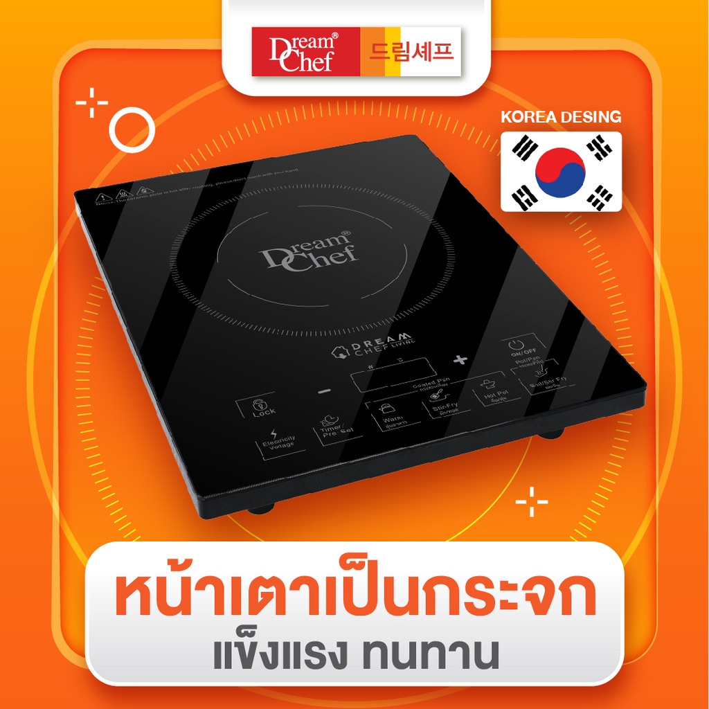 Dream Chef เตาแม่เหล็กไฟฟ้า มีฟังก์ชั่นสำหรับกระทะเคลือบ รับประกัน2ปี ฟรี! ชุดหม้อสแตนเลส+ฝาครอบแก้ว