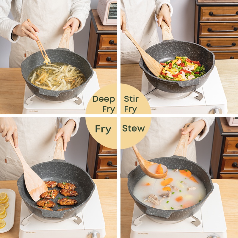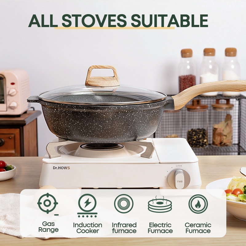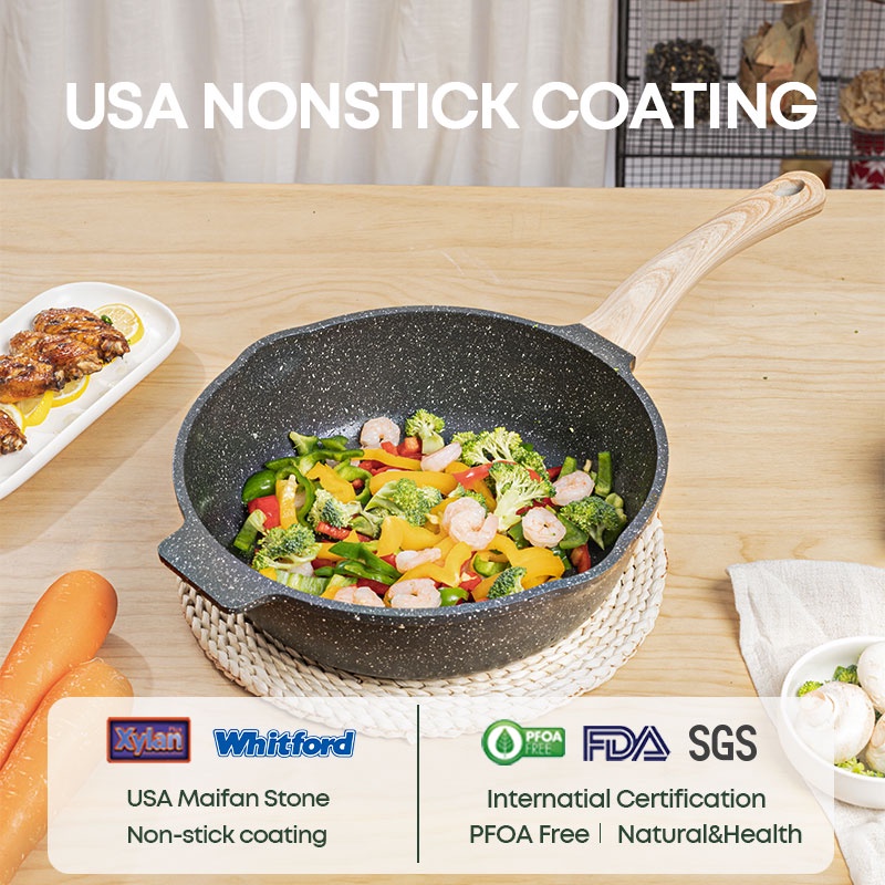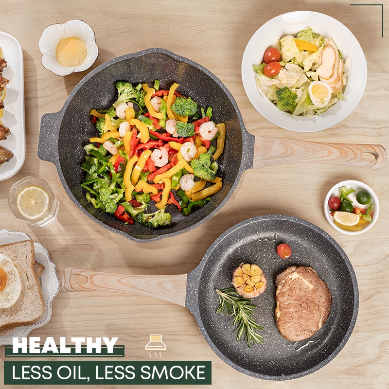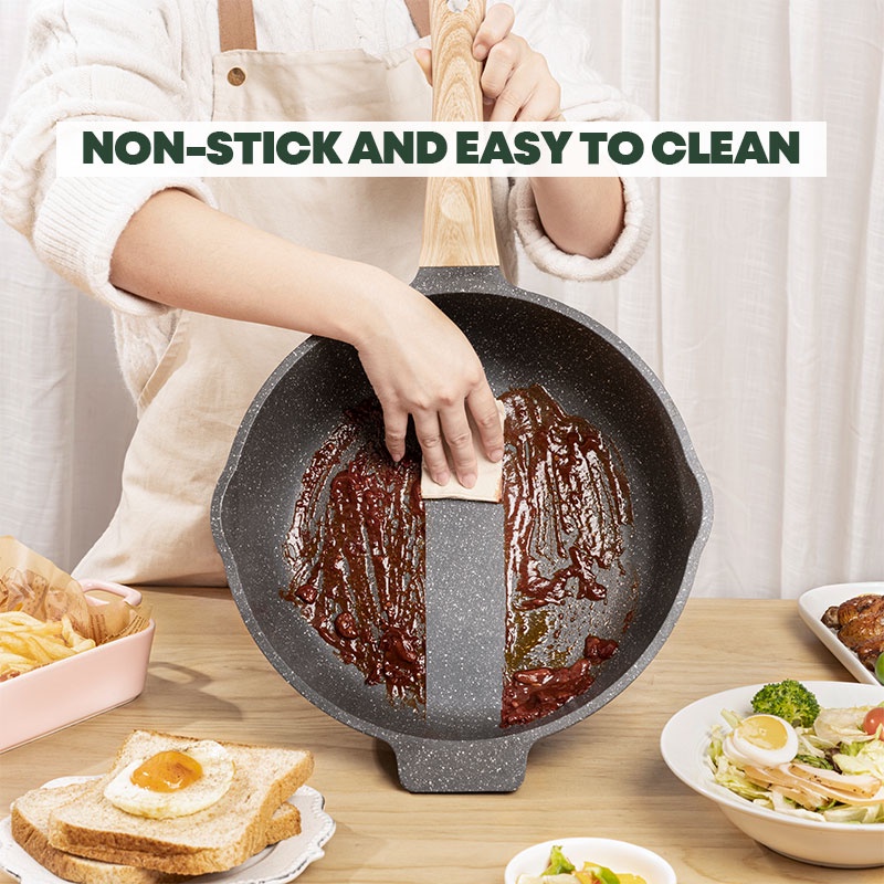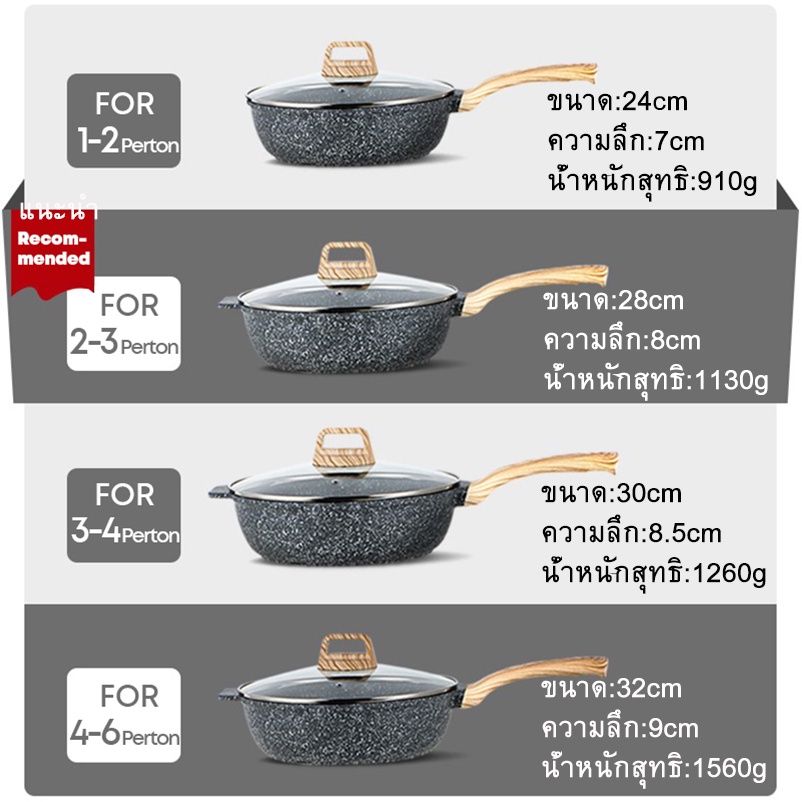 Ecowin Maifan กระทะก้นลึก การเคลือบหินทางการแพทย์ ไม่ติดกระทะ ใช้ได้กับเตาแก๊ส และเตาแม่เหล็กไฟฟ้าทุกชนิด ขนาด 24/28/30/32 ซม.