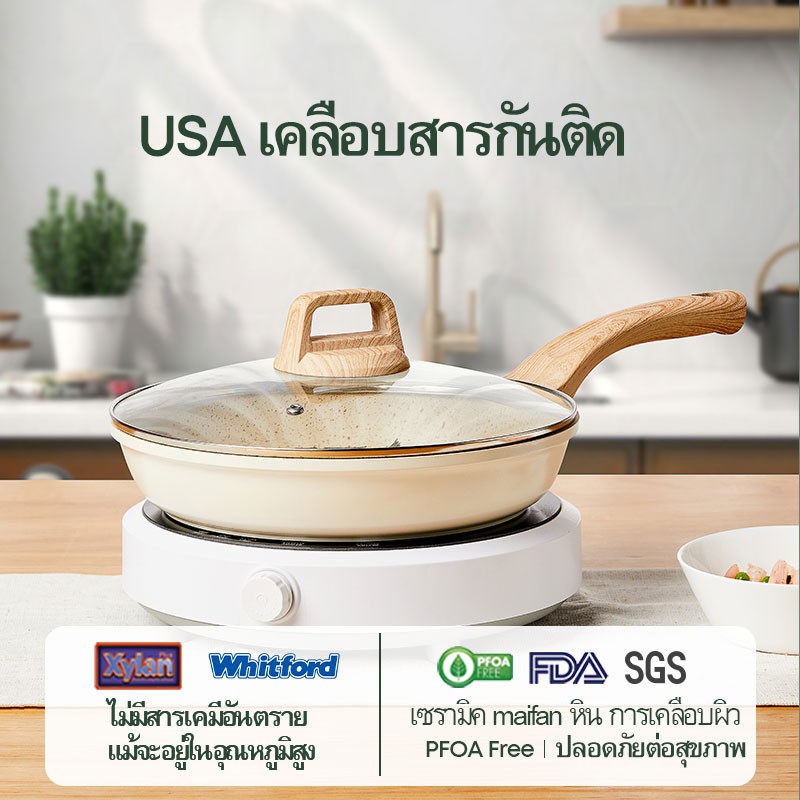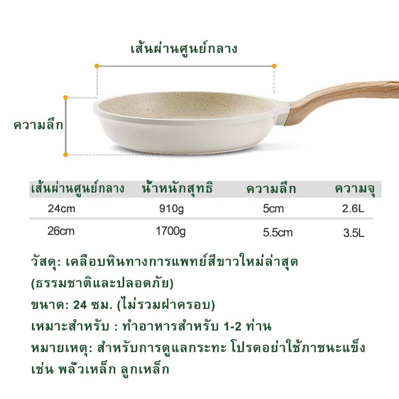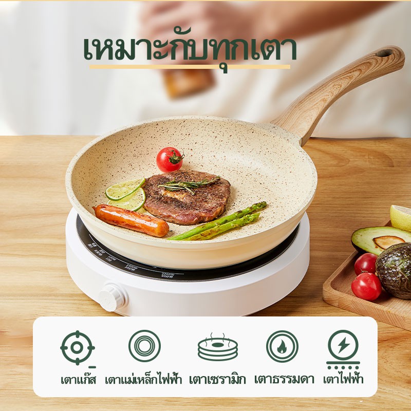 Ecowin กระทะหินอ่อน เคลือบเซรามิก กระทะทำอาหาร ก้นลึก ไม่ติดกระทะ สำหรับเตาทุกประเภท ขนาด 26/24 ซม.