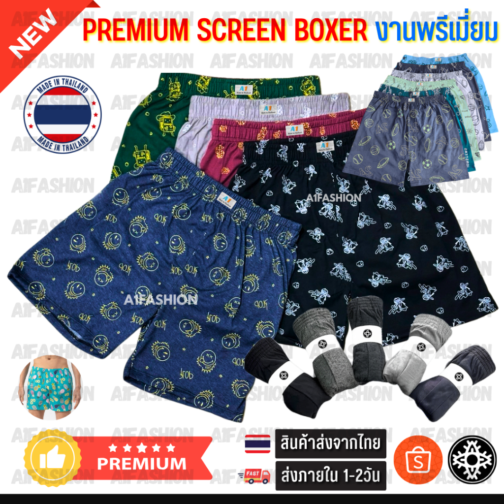 กางเกงบ๊อกเซอร์สกรีน Premium Boxer ผ้านิ่ม สีเข้ม Soft Wear กางเกง บ๊อกเซอร์ พรีเมี่ยม Unisex ชาย/หญิง (ไซส์ S-3XL)