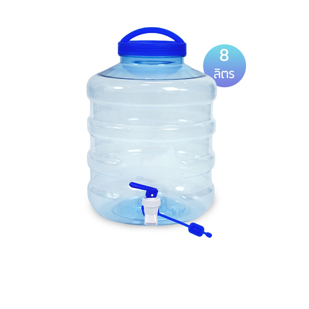 Premiumwatertank ถังน้ำ ถังน้ำดื่ม PET ถังน้ำมีก๊อกพร้อมหูหิ้ว ขนาด 8 ลิตร ลาย1X
