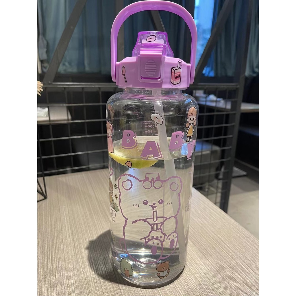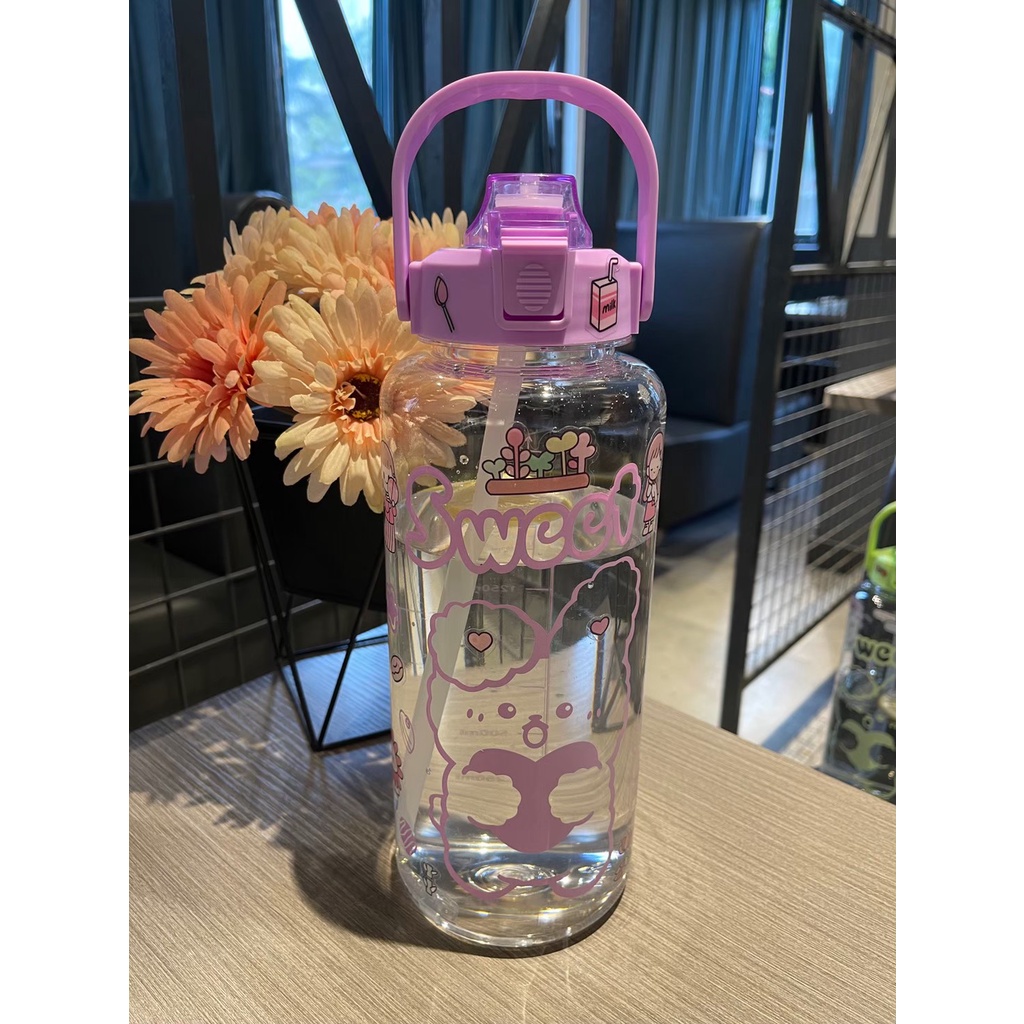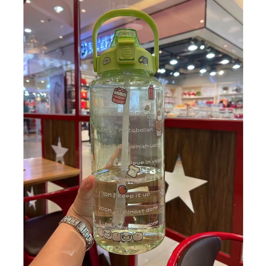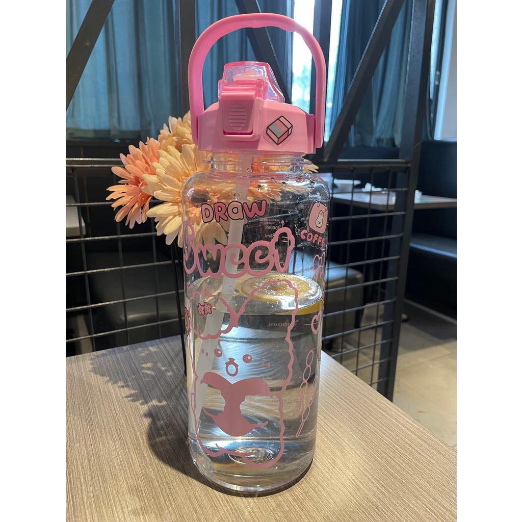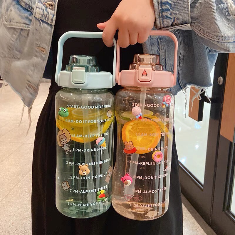 ราคาถูก📌Link YL-10🧃กระบอกน้ำ 2000ml. กระบอกน้ำบอกเวลา ขวดน้ำ2 ลิตร ขวดน้ำสไตล์เกาหลี พร้อมหลอดในตัว กระบอกน้ำน่ารัก🧃