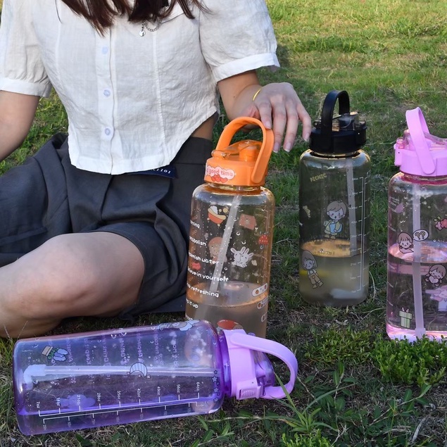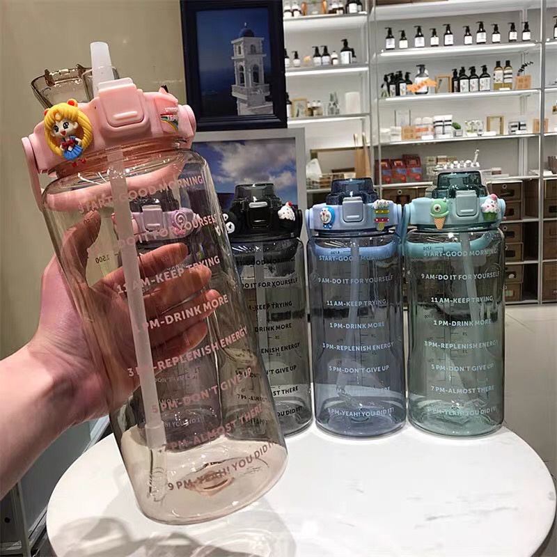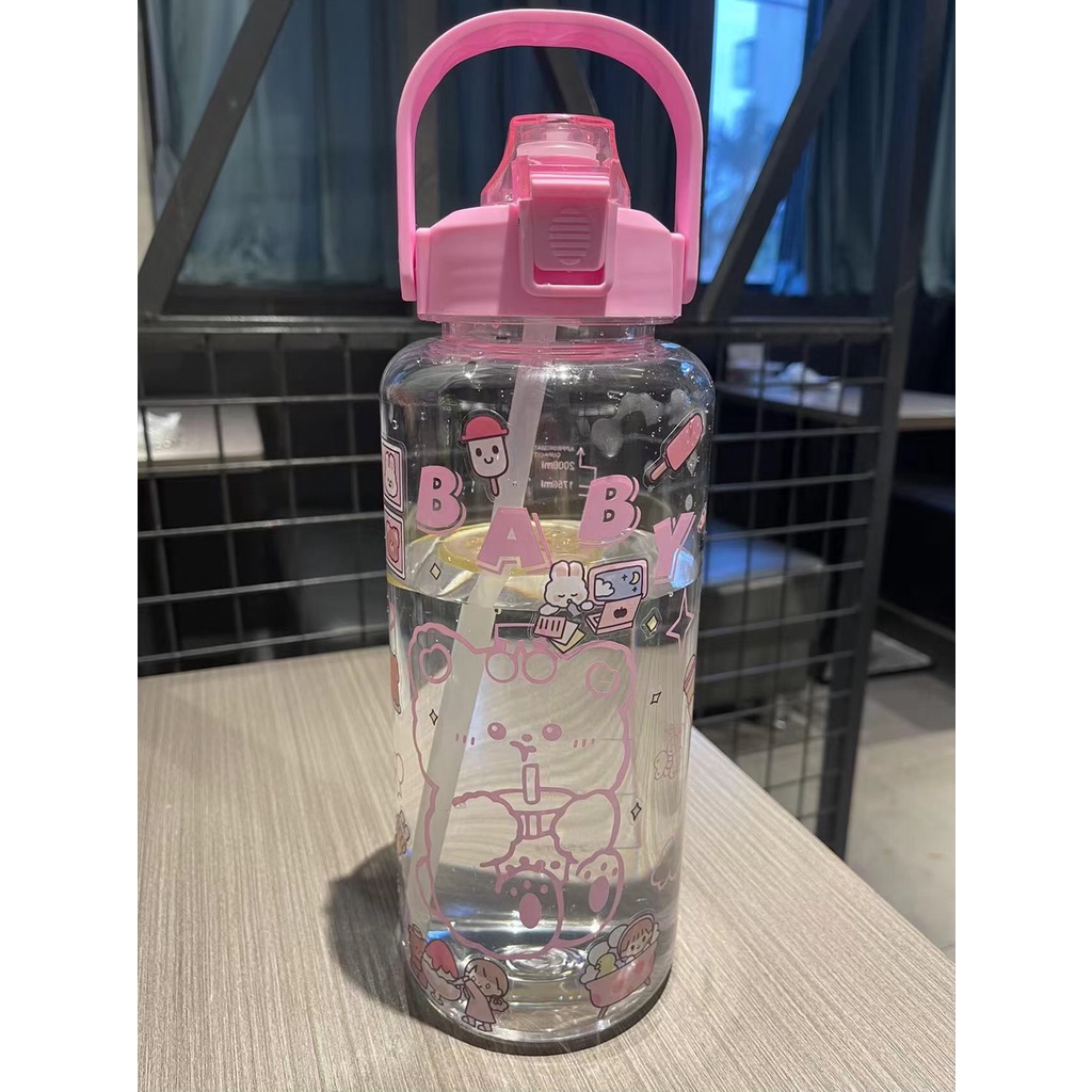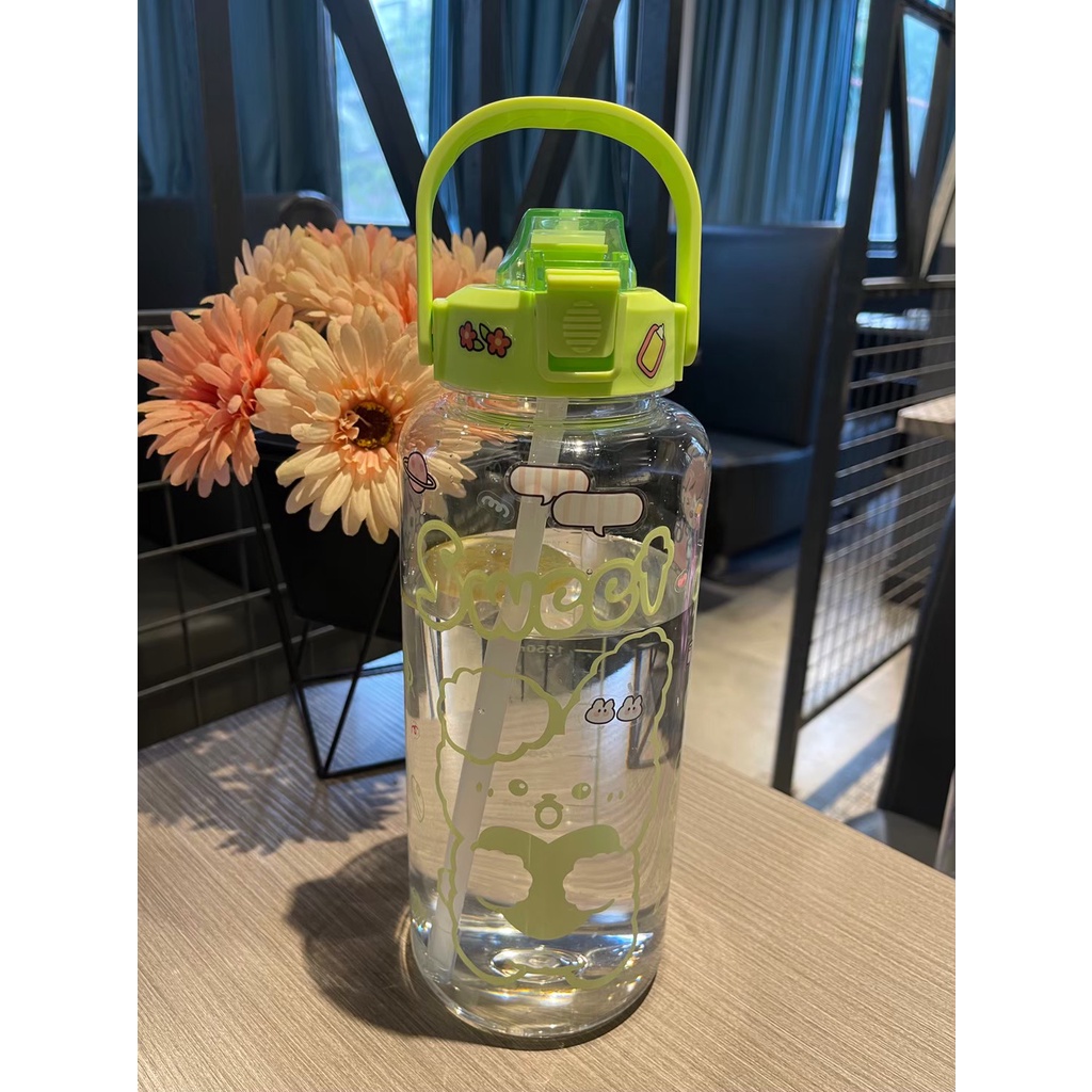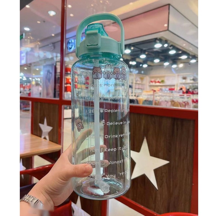 ราคาถูก📌Link YL-10🧃กระบอกน้ำ 2000ml. กระบอกน้ำบอกเวลา ขวดน้ำ2 ลิตร ขวดน้ำสไตล์เกาหลี พร้อมหลอดในตัว กระบอกน้ำน่ารัก🧃
