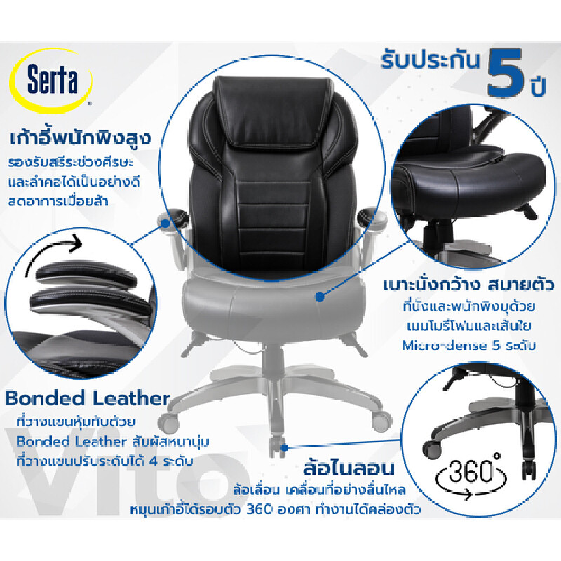 SERTA เก้าอี้ผู้บริหาร พนักพิงสูง รุ่น Vito สีดำ
