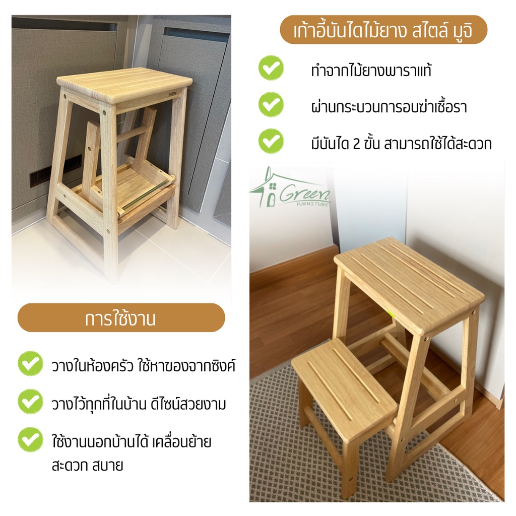 CL-001 เก้าอี้บันไดไม้ยางพารา สเต็ปแชร์ เก้าอี้บันได 2ชั้น มินิมอล (ใช้งานได้เลย ประกอบเสร็จแล้ว)