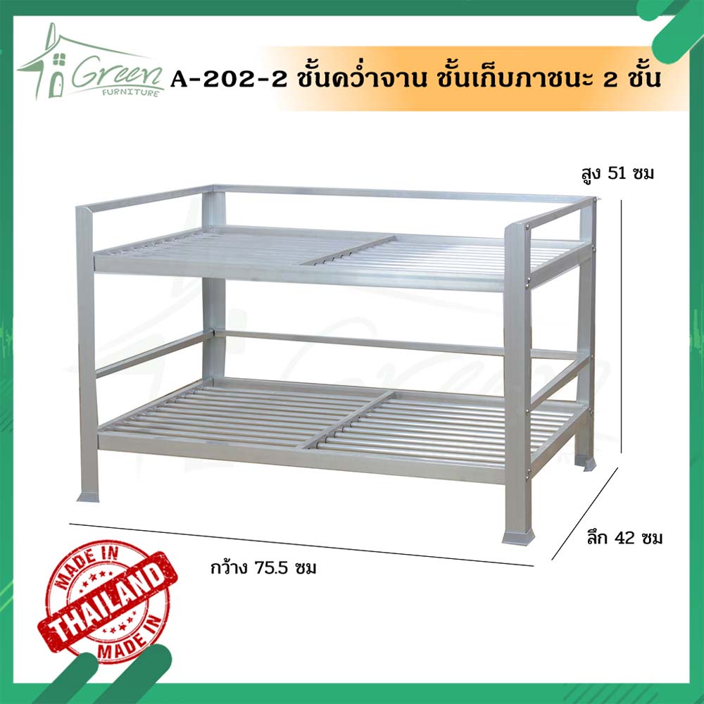 A-202-2 ชั้นอลูมิเนียมคว่ำจาน เก็บภาชนะในห้องครัว ชั้นวางของอเนกประสงค์ ขนาด 75.5*42*51 ซม.