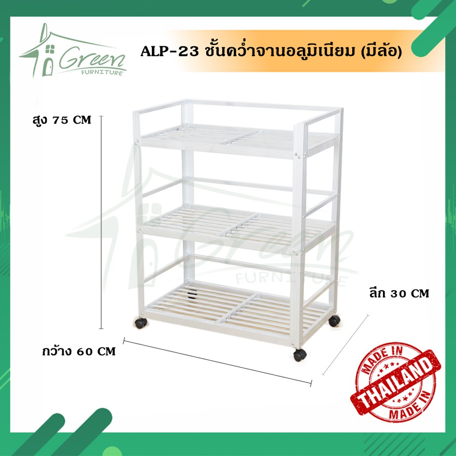 ALP-23 ชั้นคว่ำจาน ชั้นเก็บภาชนะในห้องครัวอลูมิเนียม ขนาด 60*30*75 CM. 3 ชั้น (มีล้อ)
