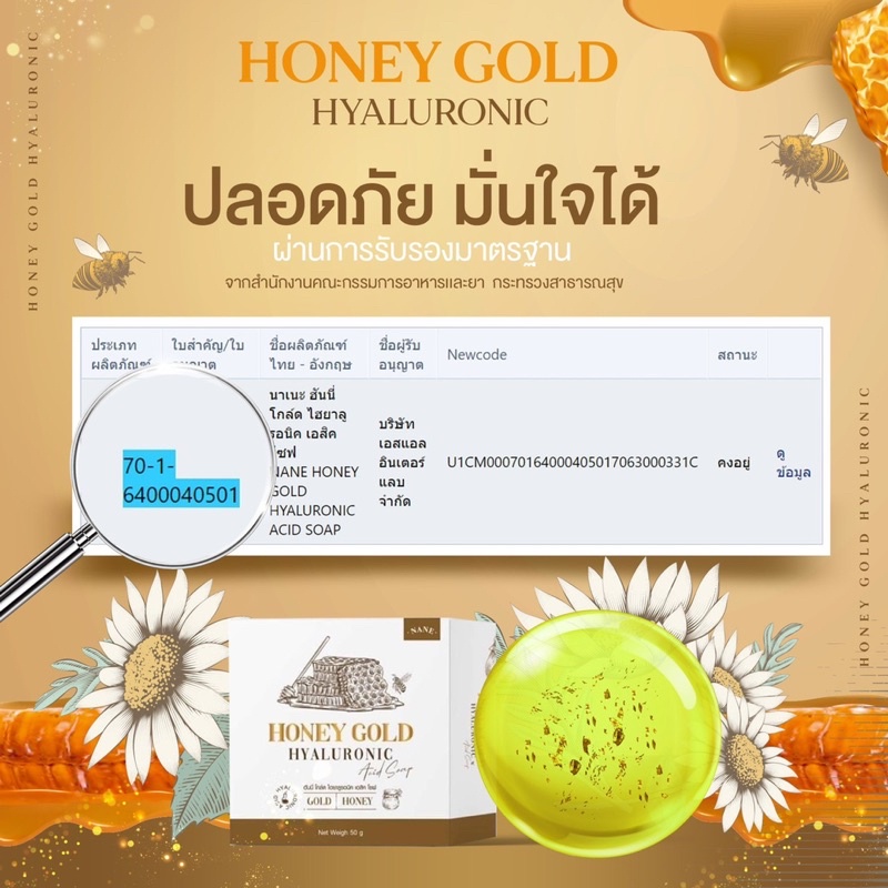 ‼️3 ก้อน ส่งฟรี‼️สบู่น้ำผึ้งทองคำ ของแท้💯 | Honey Gold Hyaluronic น้ำผึ้งทองคำ สบู่ฮันนี่โกลด์