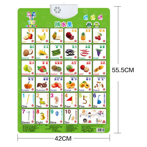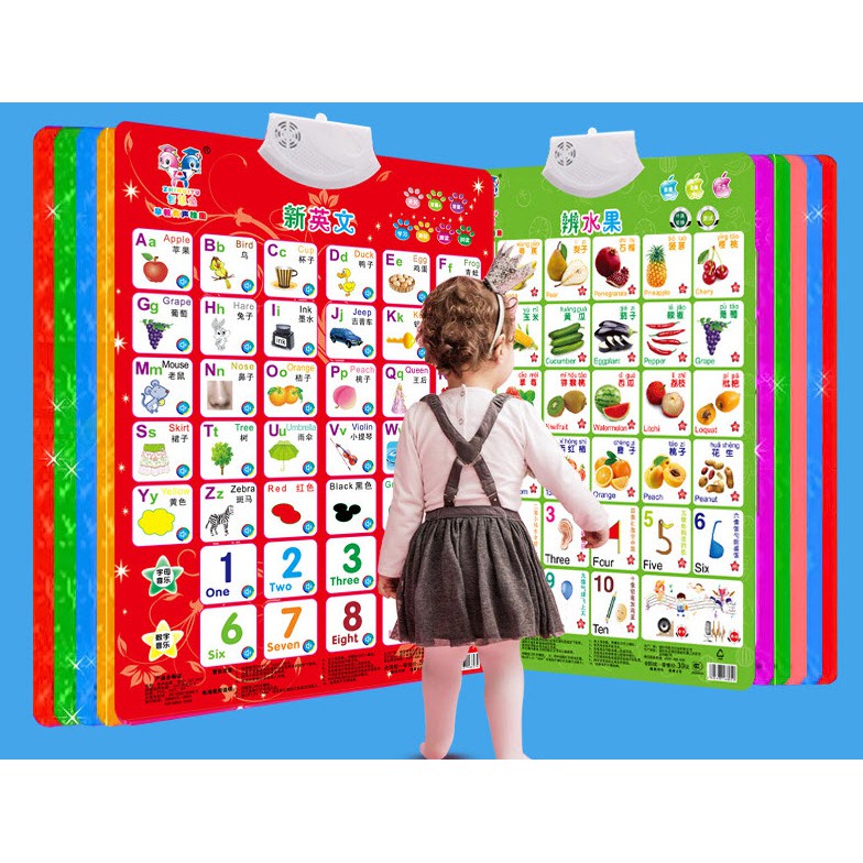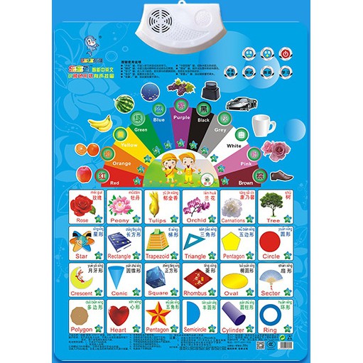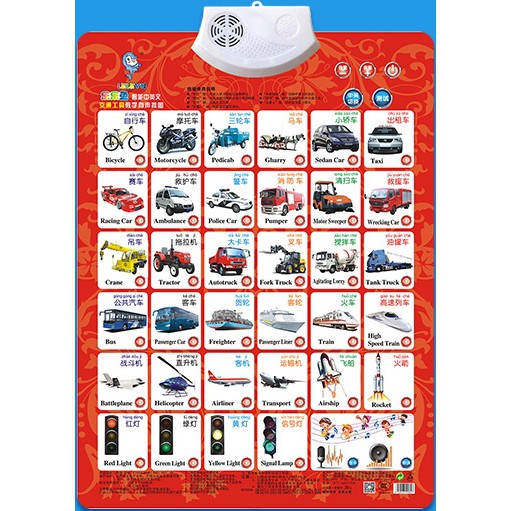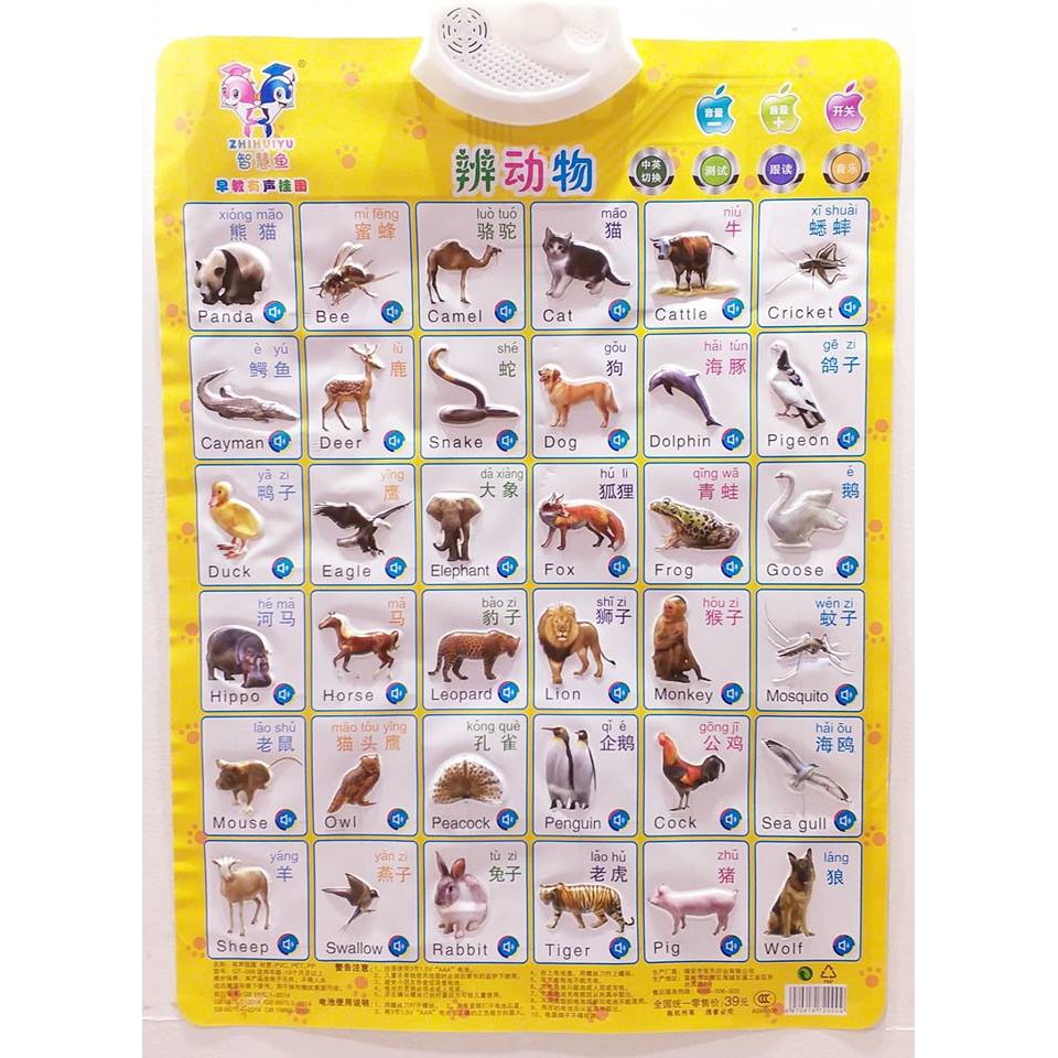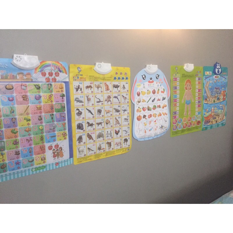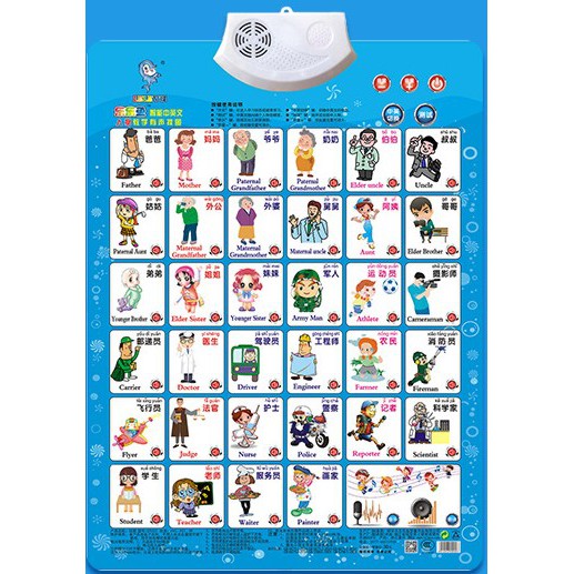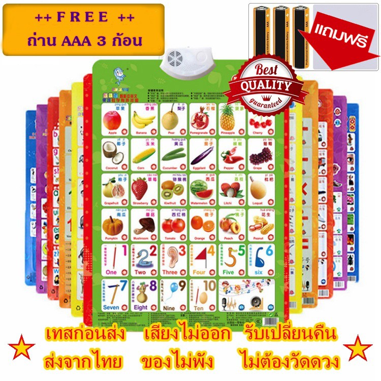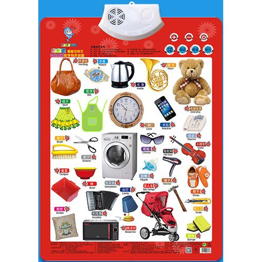 [แถมถ่านและตะขอ] โปสเตอร์ 3D พูดได้กดมีเสียง เรียนรู้คำศัพท์พื้นฐาน 14 หมวด สอนภาษาอังกฤษ-จีน