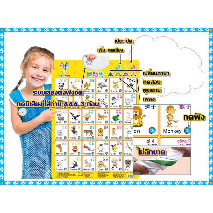 [แถมถ่านทุกหมวด] โปสเตอร์พูดได้ 2 ภาษา ของเล่นเด็กอัจฉริยะ เหมาะกับเด็กปฐมวัย เรียนรู้ศัพท์พื้นฐานมากมาย ถูกสุด