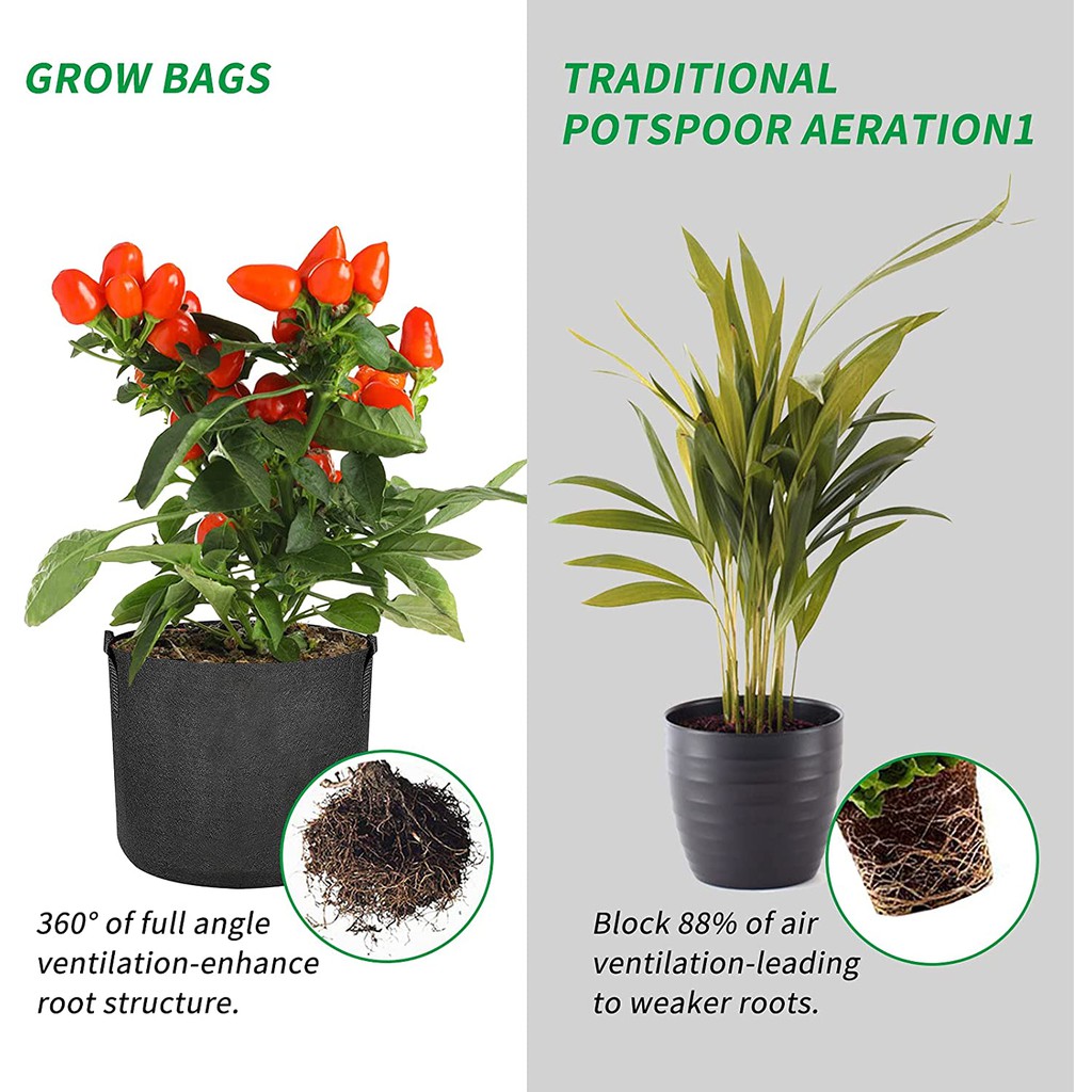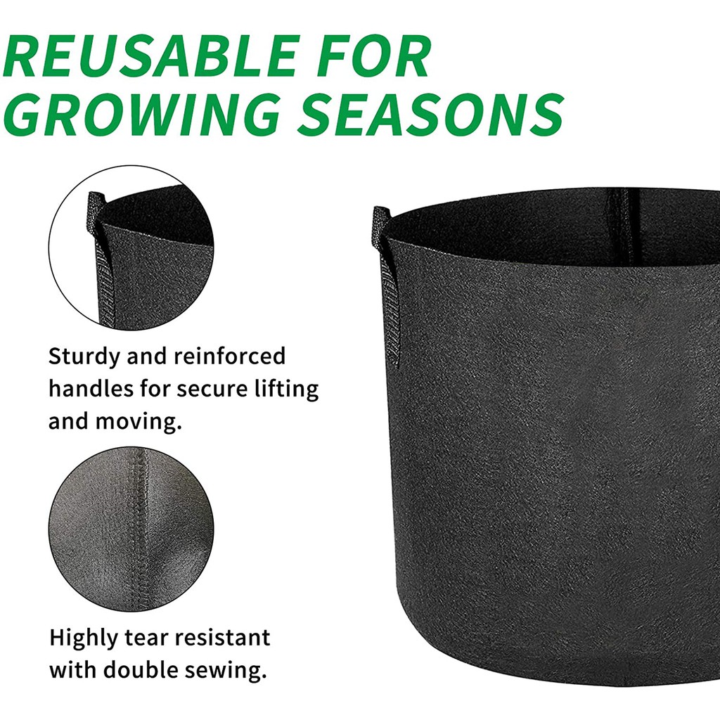 กระถางผ้า กระถางปลูกต้นไม้ [Grow Bag] [มีหูหิ้ว] [Fabric Plant Pots ]Bag pot 1,3,5,7,10 Gallon ถุงปลูก 1,3,5,7,10 แกลลอน