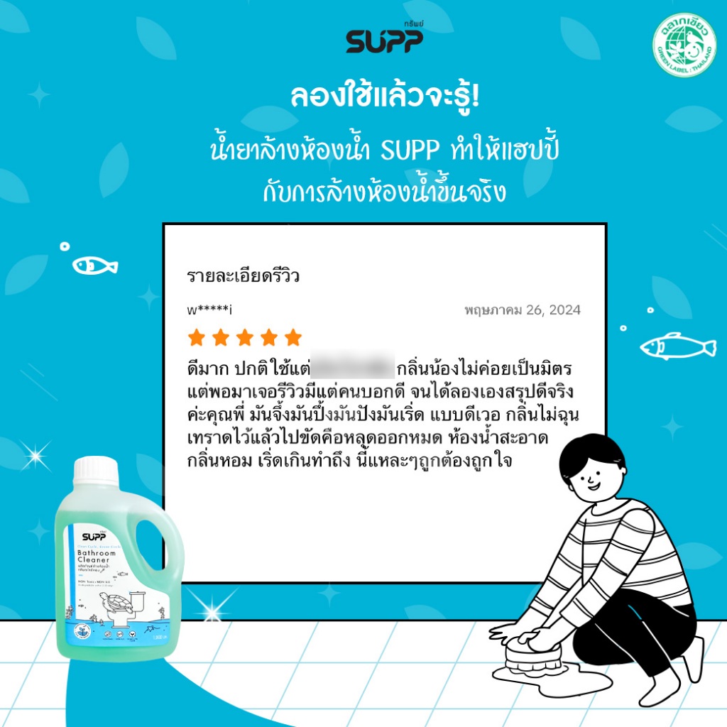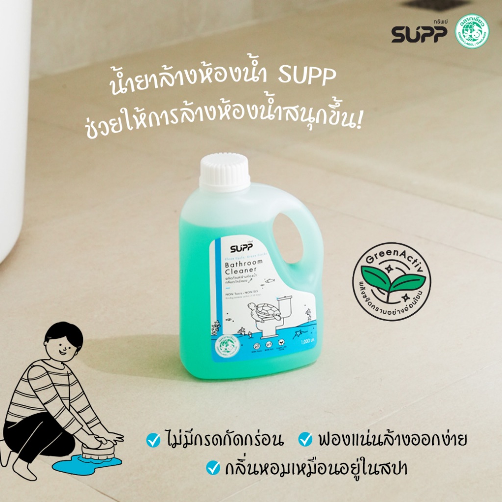 SUPP น้ำยาล้างห้องน้ำ กลิ่นตะไคร้หอมจาก Essential Oil กลิ่นหอมไม่ฉุน ไม่มีกรดกัดกร่อน ขนาด 1 ลิตร