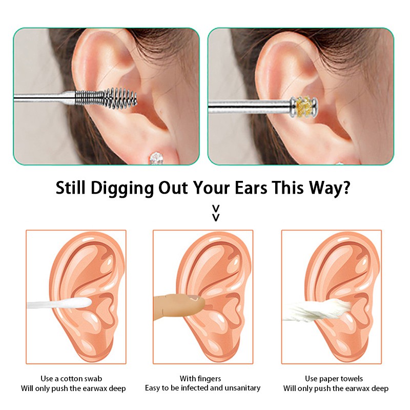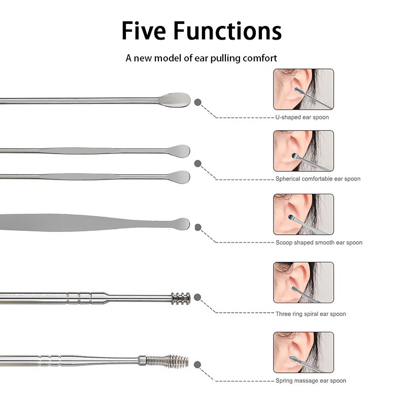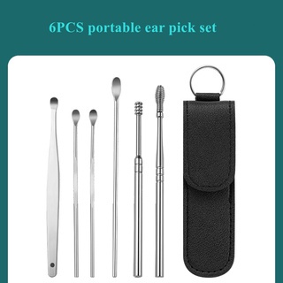 ที่แคะหู แคะหู ไม้ปั่นหู ชุดไม้แคะหู แบบสเตนเลส 6 ชิ้น