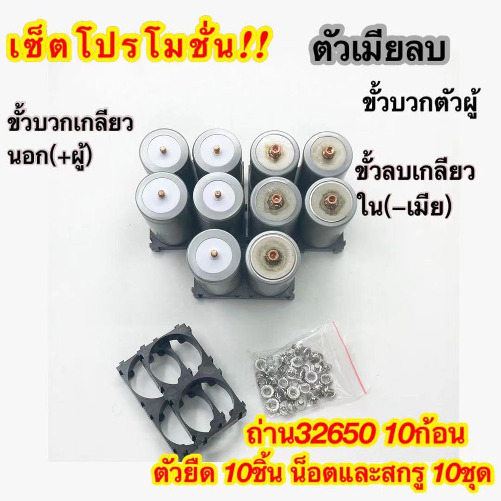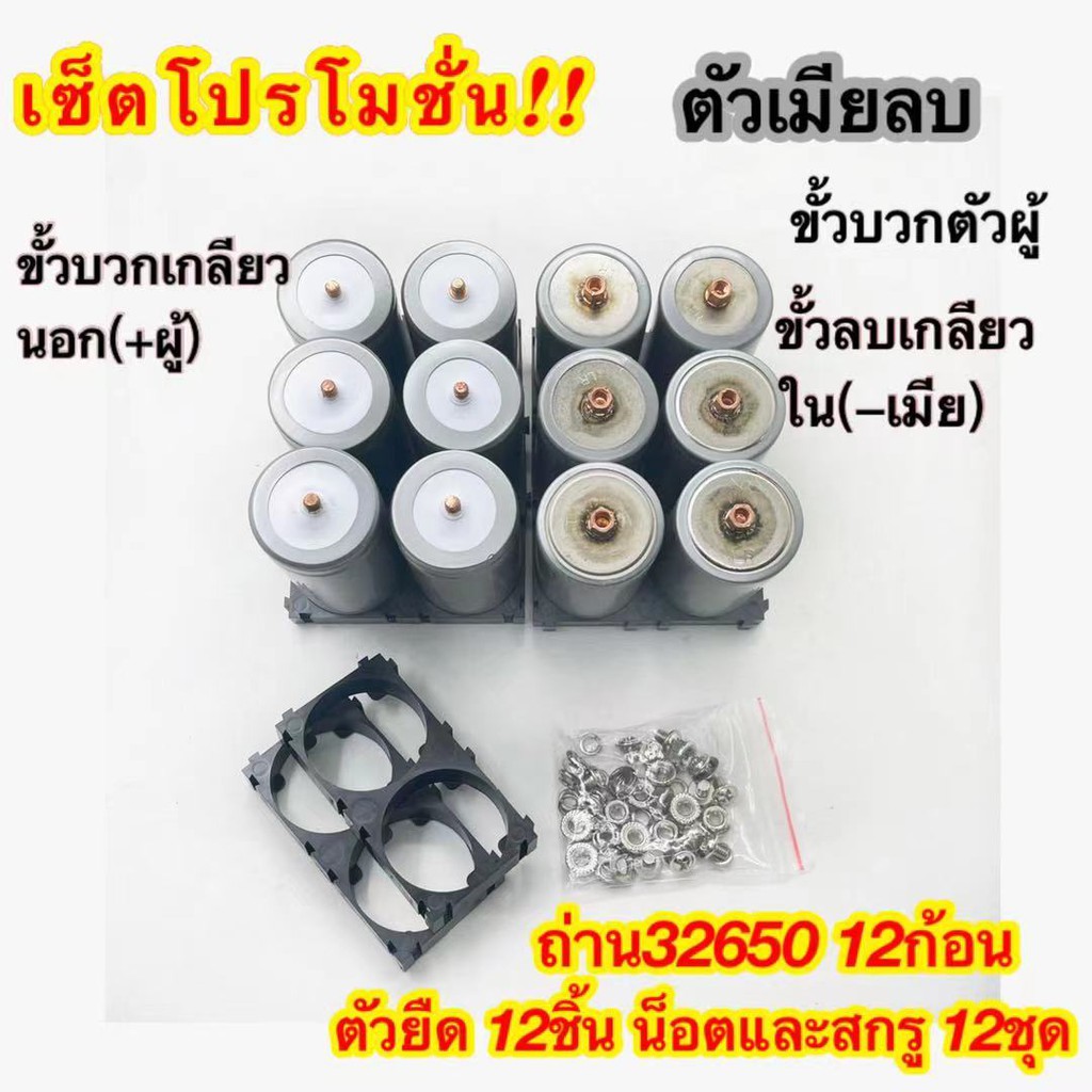 เซ็ตโปรโมชั่น!! ตัวเมียลบ แบตเตอรี่32650 (ชุดSet 8,10,12ก้อน) พร้อมตัวยึด 2ช่อง+ชุดสกรู LiFePO4 3.2v6,000 - 6,500mAh