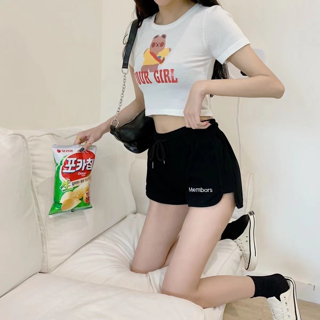 KKS กางเกงขาสั้นผู้หญิง กางเกงขาสั้น สายฝอ xl xxl film fit สไตล์เกาหลี วินเทจ ผ้ายืด เอวยางยืด เอวสูง ใส่สบาย 809