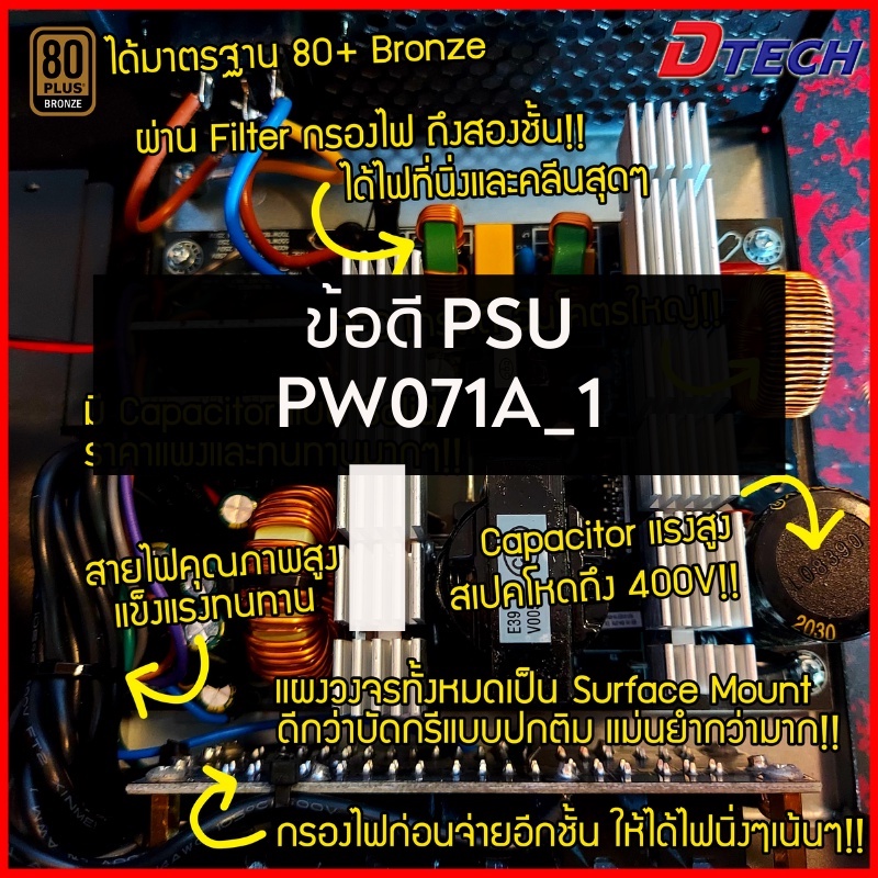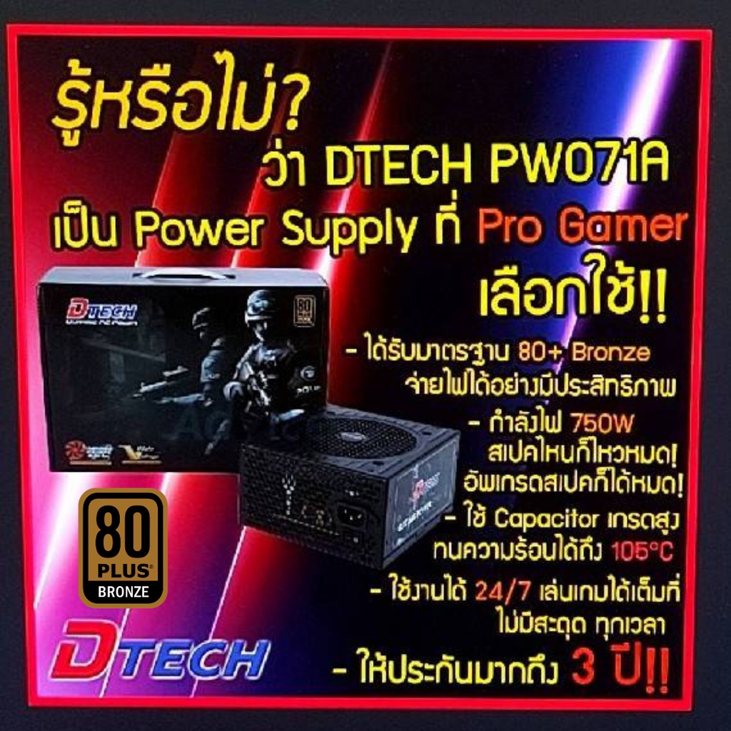 Dtech Power Supply 750W (80 Plus Bronze) รุ่น PW071A ปรับความเย็นอัตโนมัติ #พาวเวอร์ซัพพลาย #power supply