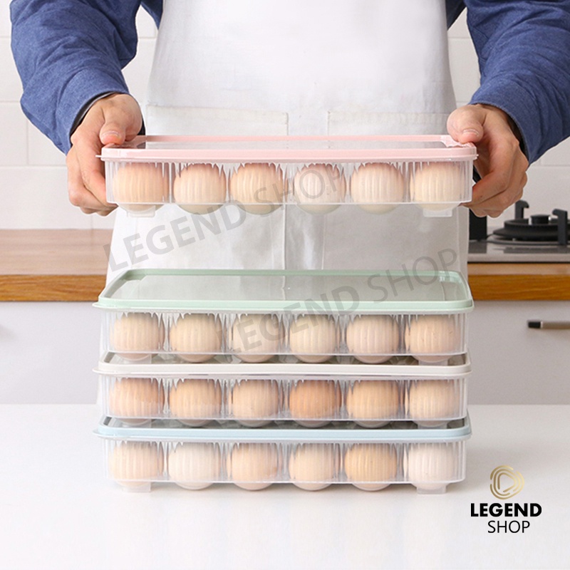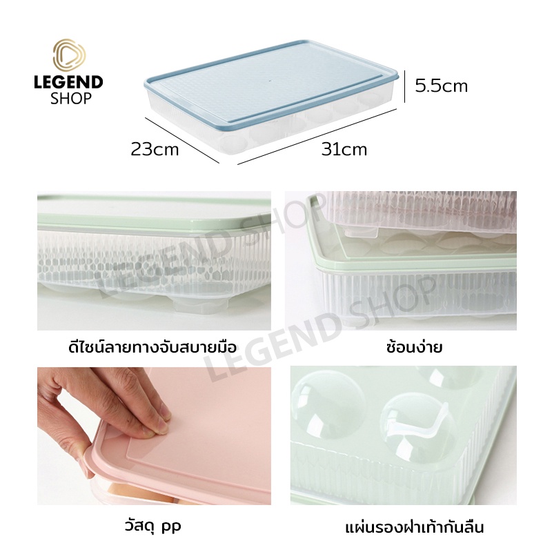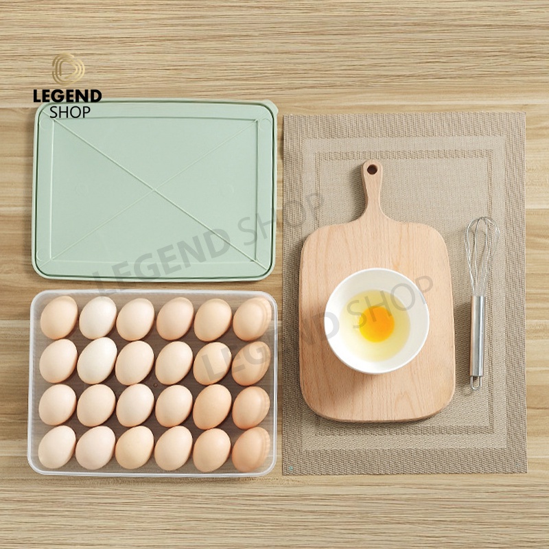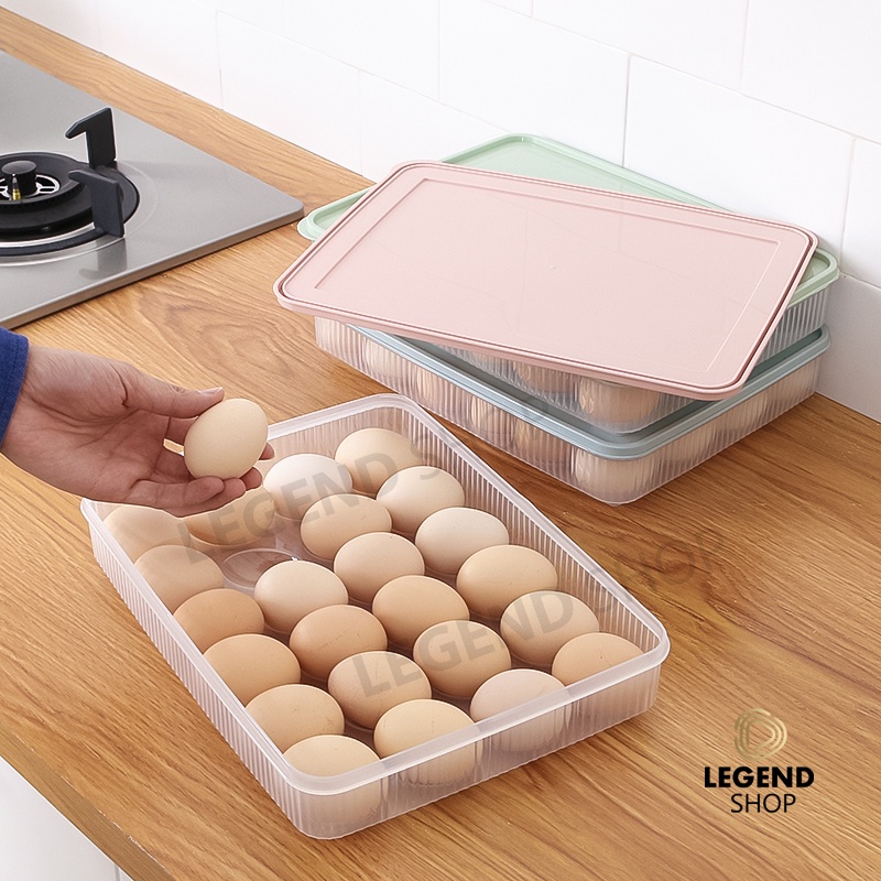 กล่องใส่ไข่ 24 ช่อง พร้อมฝาปิด 31.5x23.5x5.5 cm วางซ้อนกันได้ แช่ในตู้เย็น กล่องเก็บไข่ ที่เก็บไข่ มีให้เลือก 4 สี